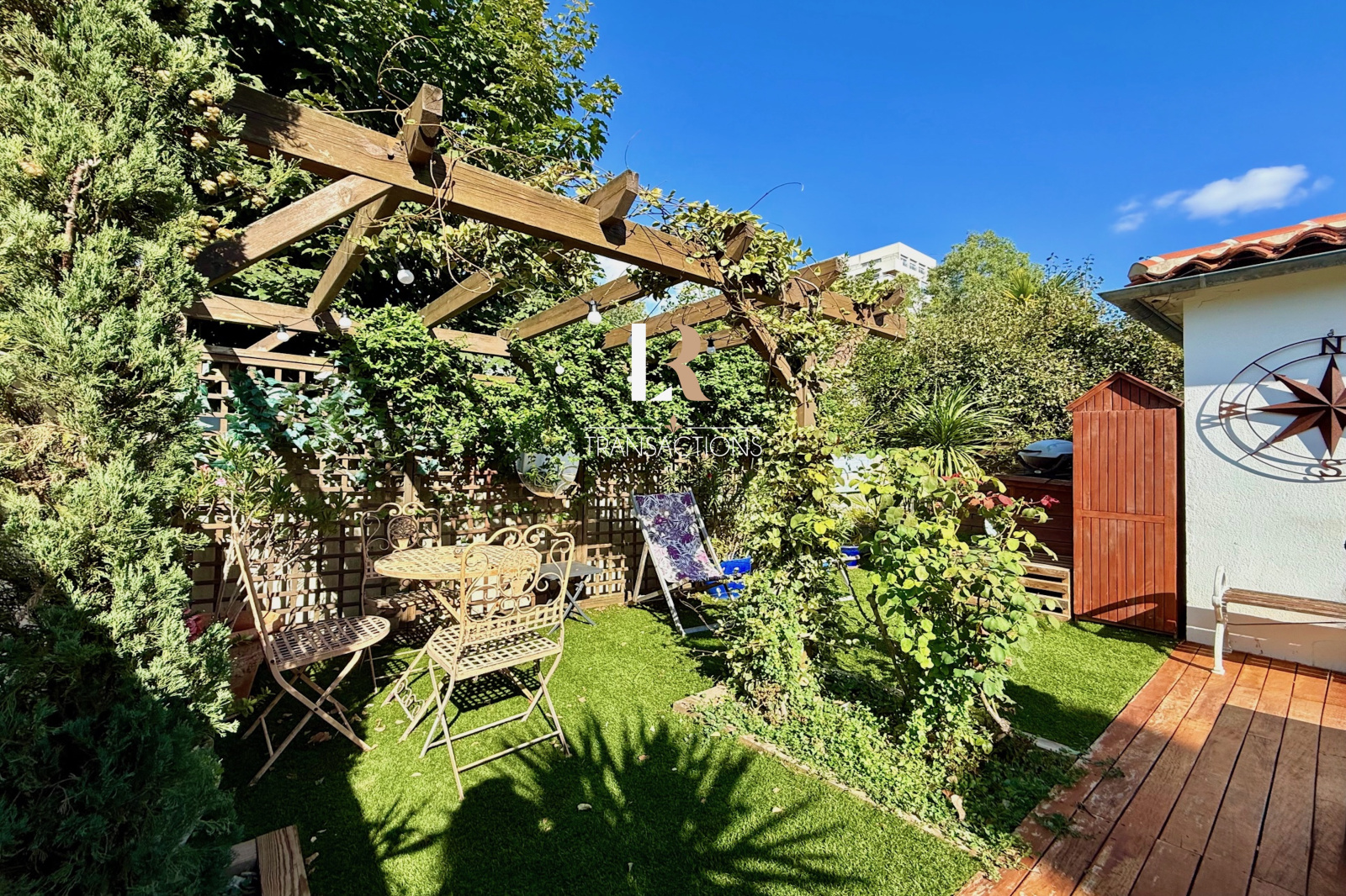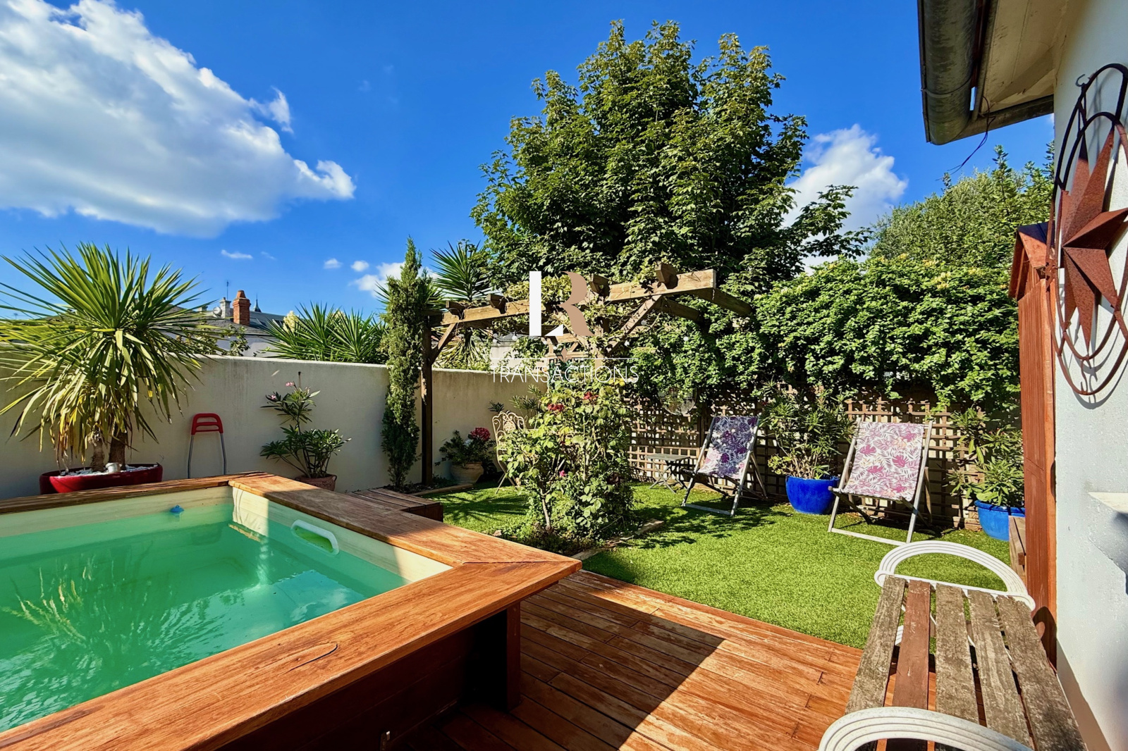 Côté extérieur, un jardin sans trop d’entretien propose un espace repas, une piscine semi-enterrée ainsi qu'un coin détente végétalisé vient compléter cette jolie maison de ville.