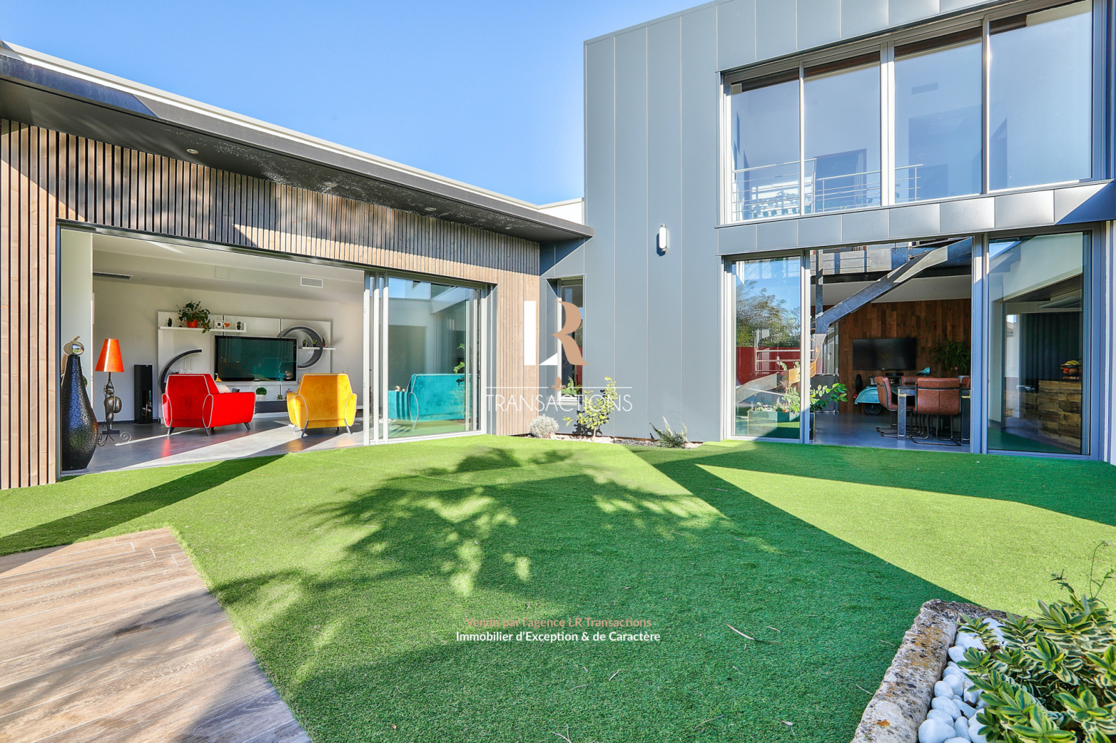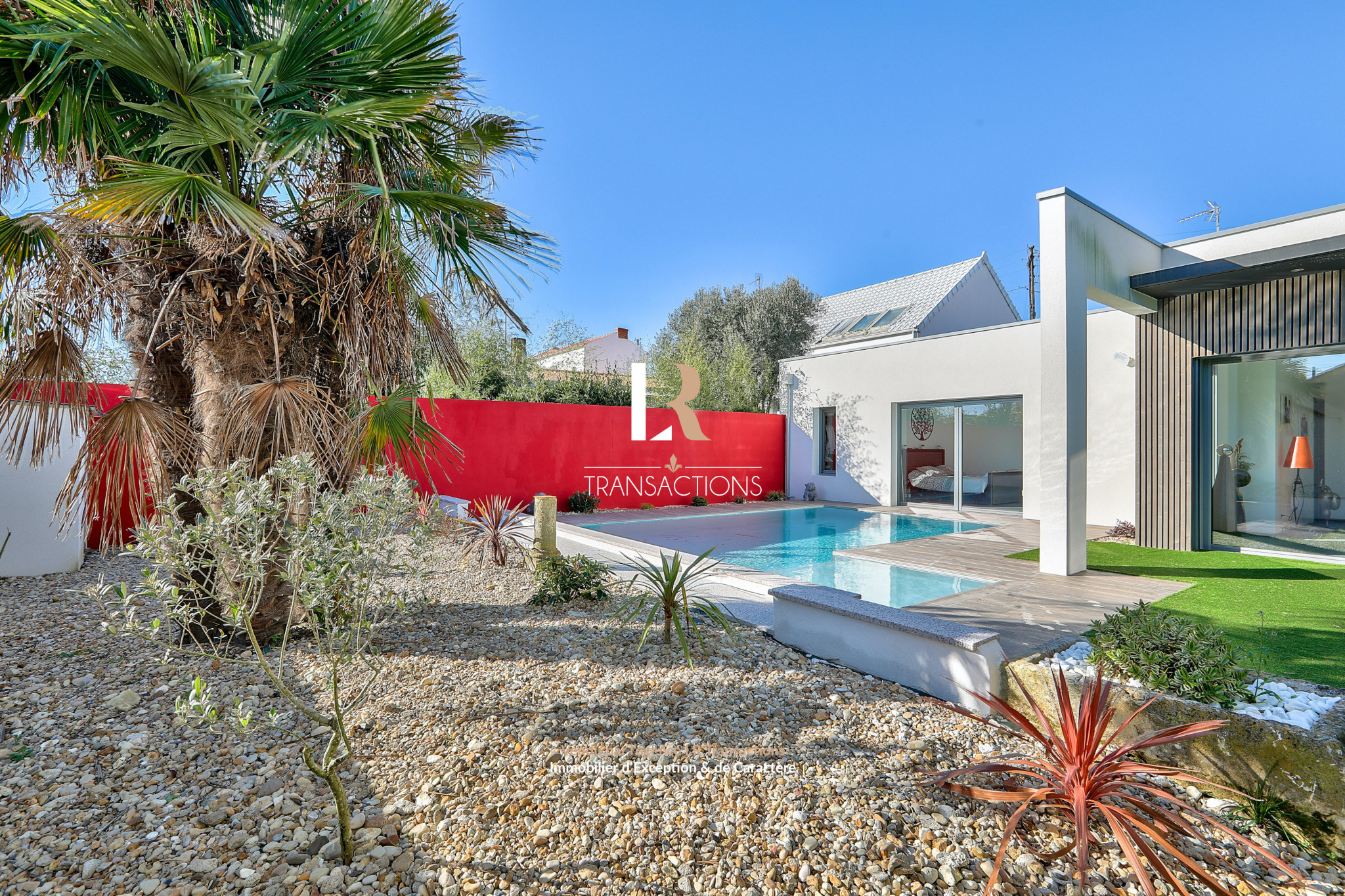 Dotée d'un espace de vie de plus de 100m² ouvert sur un jardin calme, à l'abri des regards avec piscine chauffée et cuisine d'été.