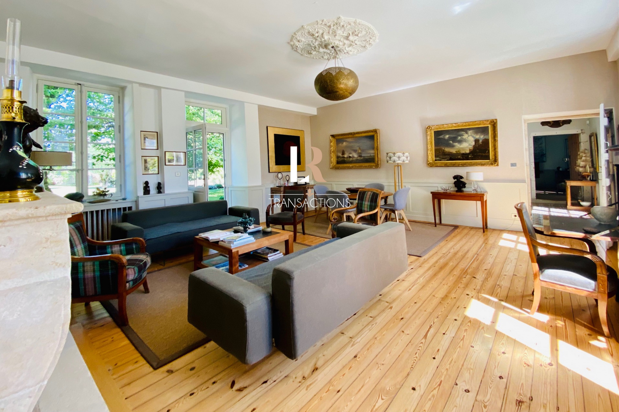 et ses deux éviers en pierre qui s'intègre parfaitement dans cette demeure de caractère qui vous permet de cuisiner avec une vue imprenable sur le jardin. Pour le côté travail vous bénéficiez également d'un bureau indépendant au calme avec un accès sur l'exterieur. En empruntant un superbe escalier en bois d'époque l'étage vous propose trois belles chambres, une salle d'eau, une seconde suite parentale avec un très grand dressing et salle d'eau à double accès. Côté exterieur au fond du jardin une dépendance discrètement dissimulée sous la végétation peut servir à entreposé le matériel de jardin et servir d'atelier. La cours d'acceuil vous donne également accès à une grande dépendance à remettre au goût du jour pour y acceuillir des amis.