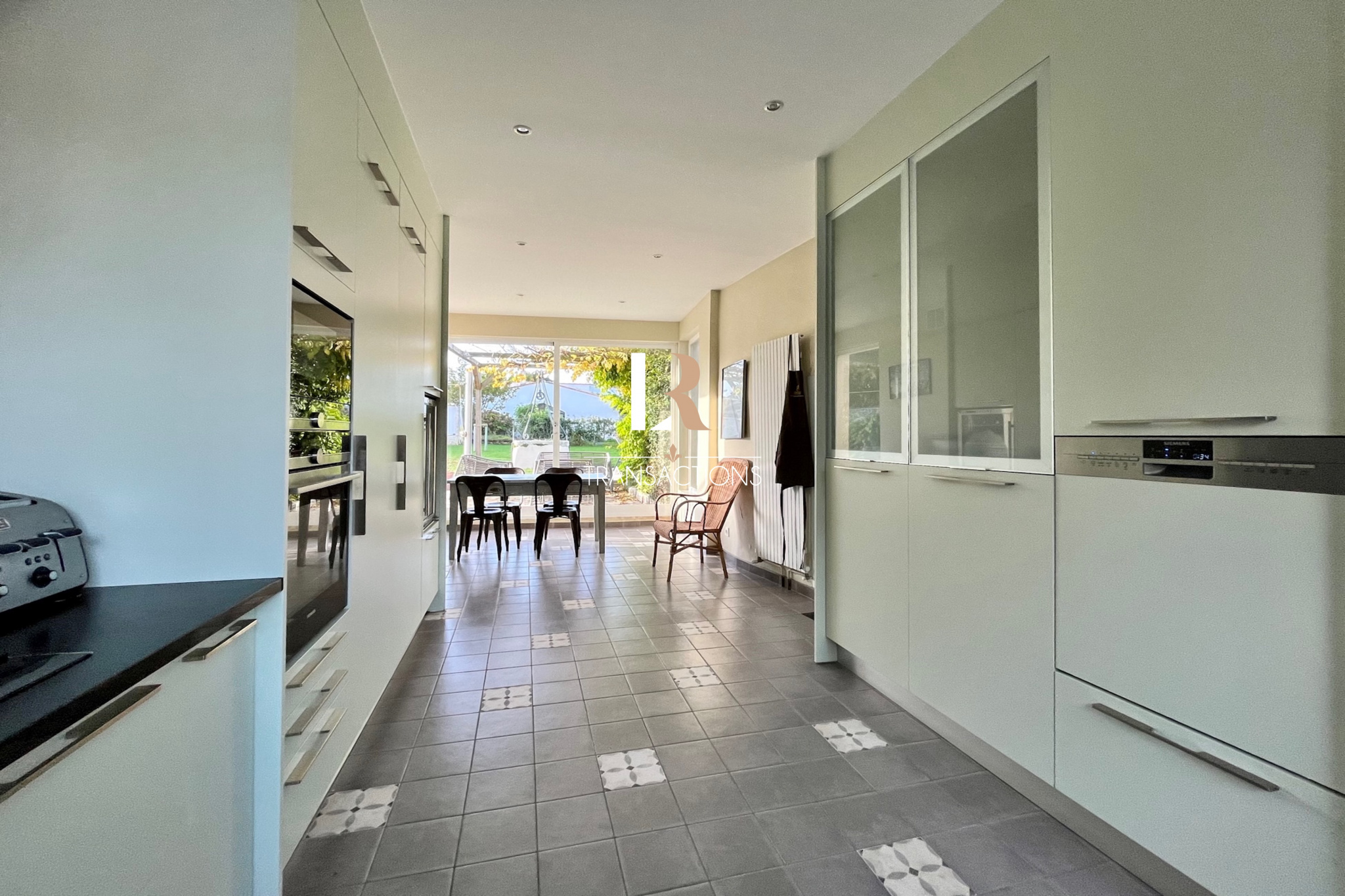 Une entrée séparée avec placard et wc indépendant s’ouvre sur un séjour donnant sur le vaste jardin. Sur sa gauche, vous trouverez un beau salon avec cheminée, sur sa droite une cuisine avec espace repas entièrement vitré vous permettra de profiter d’une vue à 180° sur les extérieurs, une arrière cuisine et une buanderie faciliteront votre quotidien. Une jolie cave à vin est à votre disposition pour laisser vieillir vos belles bouteilles.