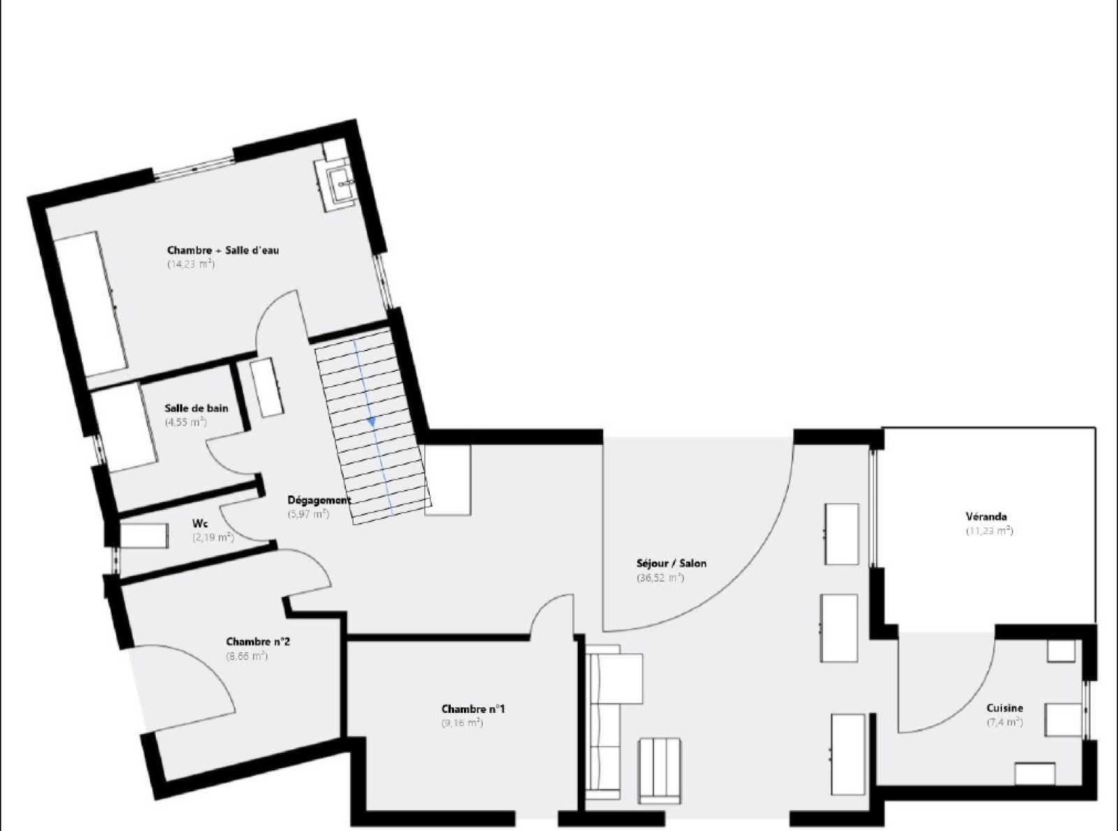En souplex, un studio de 22 m² avec accès indépendant, un garage de 15 m² et un immense espace de stockage .