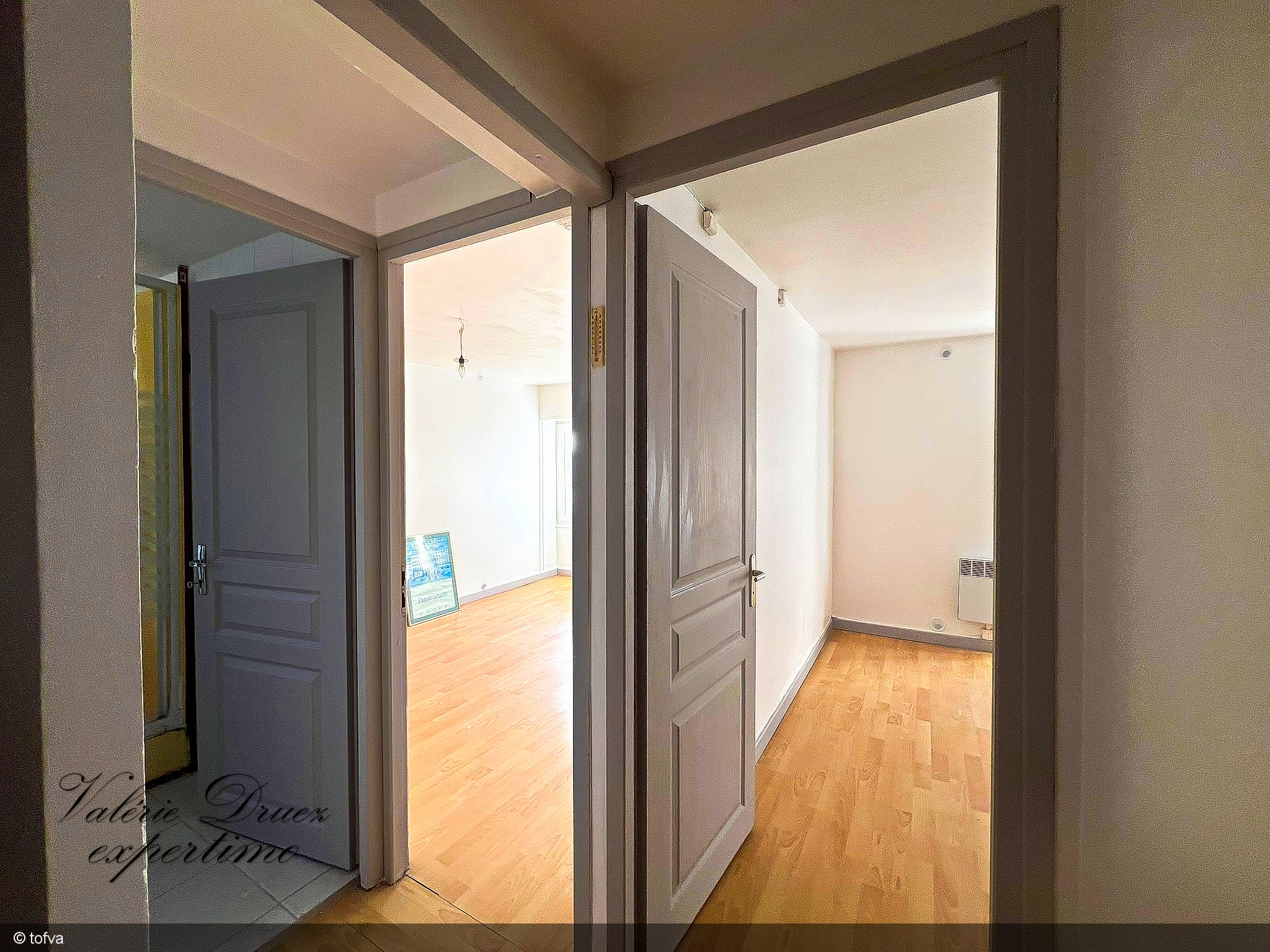 Entrée-bureau avec placard, porte fenêtre, parquet ancien