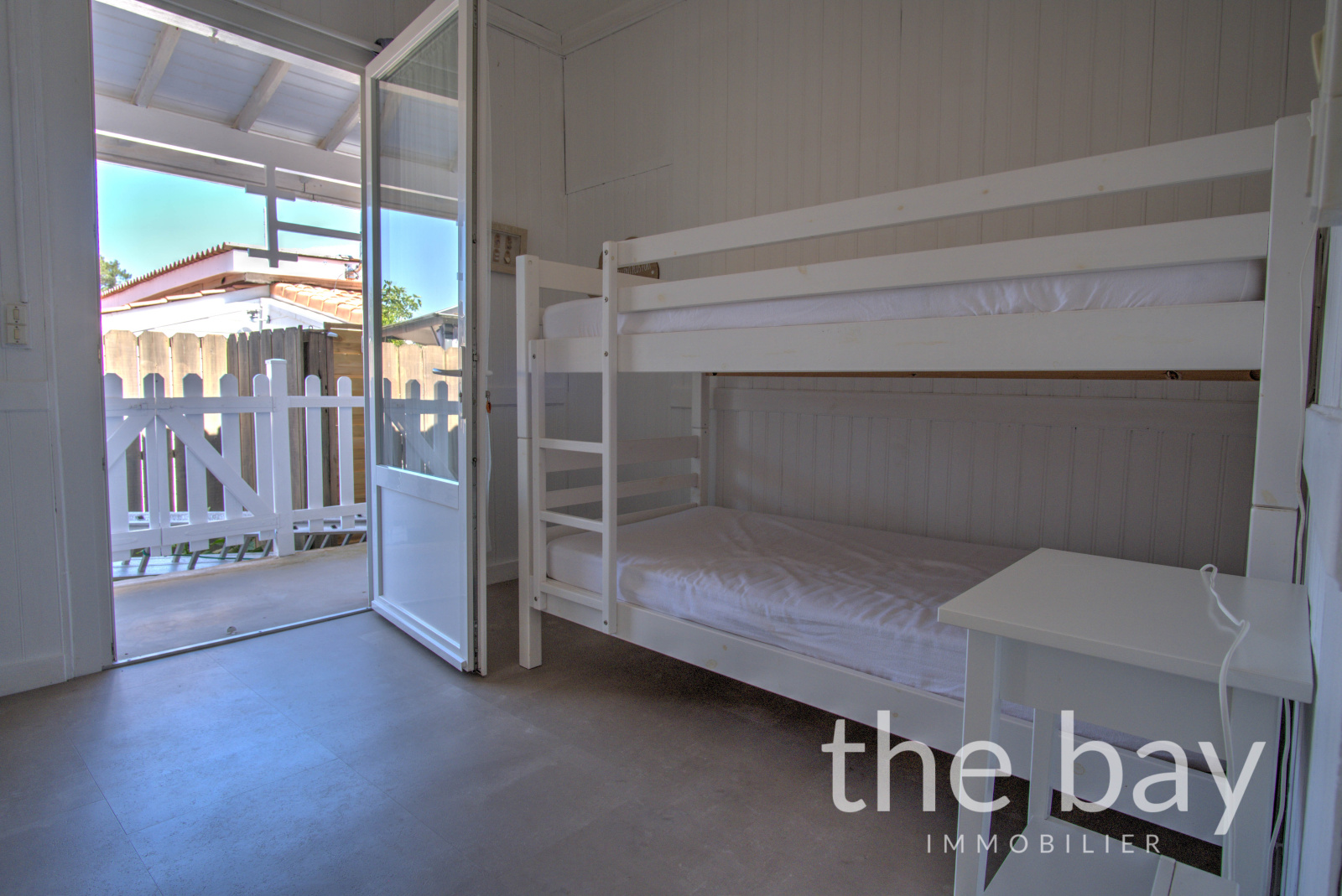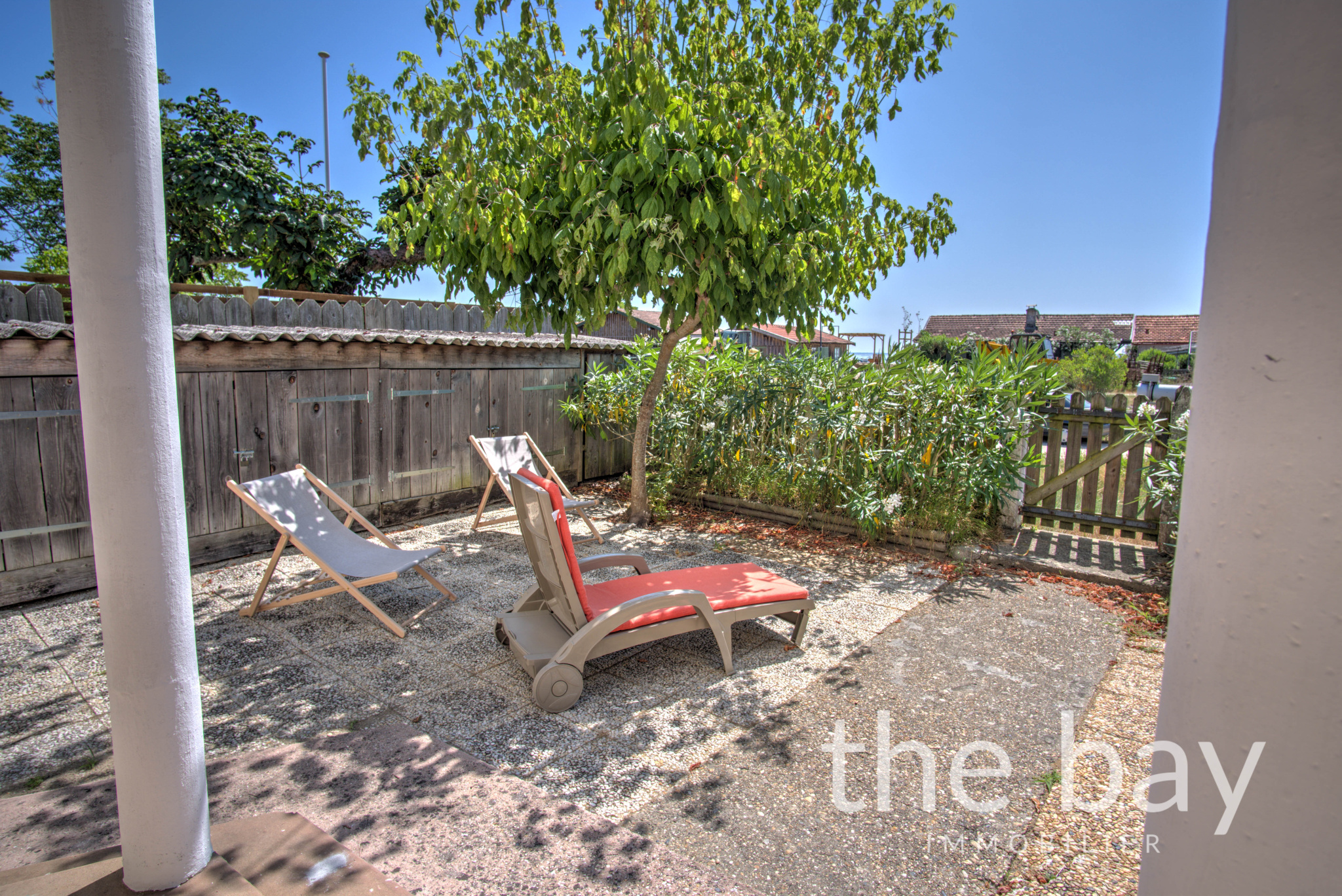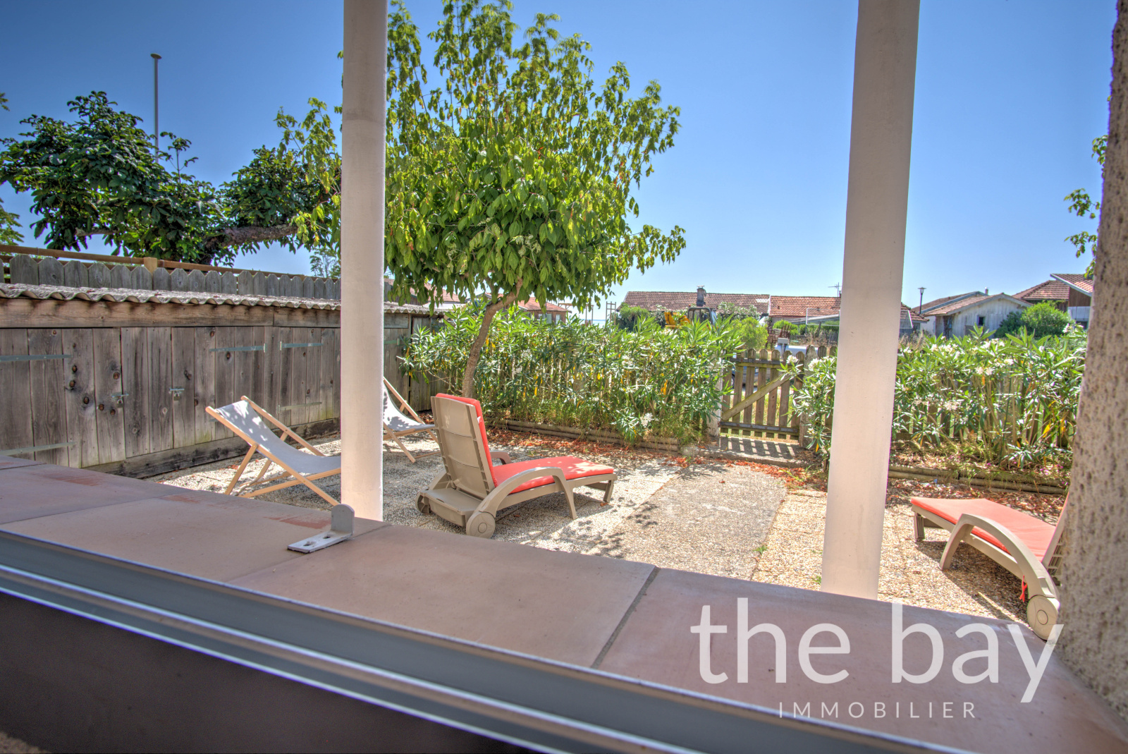 Vous profiterez également de deux terrasses couvertes, l’une côté Bassin et l’autre côté rue, ainsi que de la jouissance exclusive d’un jardin d’environ 100 m² doté d’un portillon offrant un accès privilégié au Bassin.