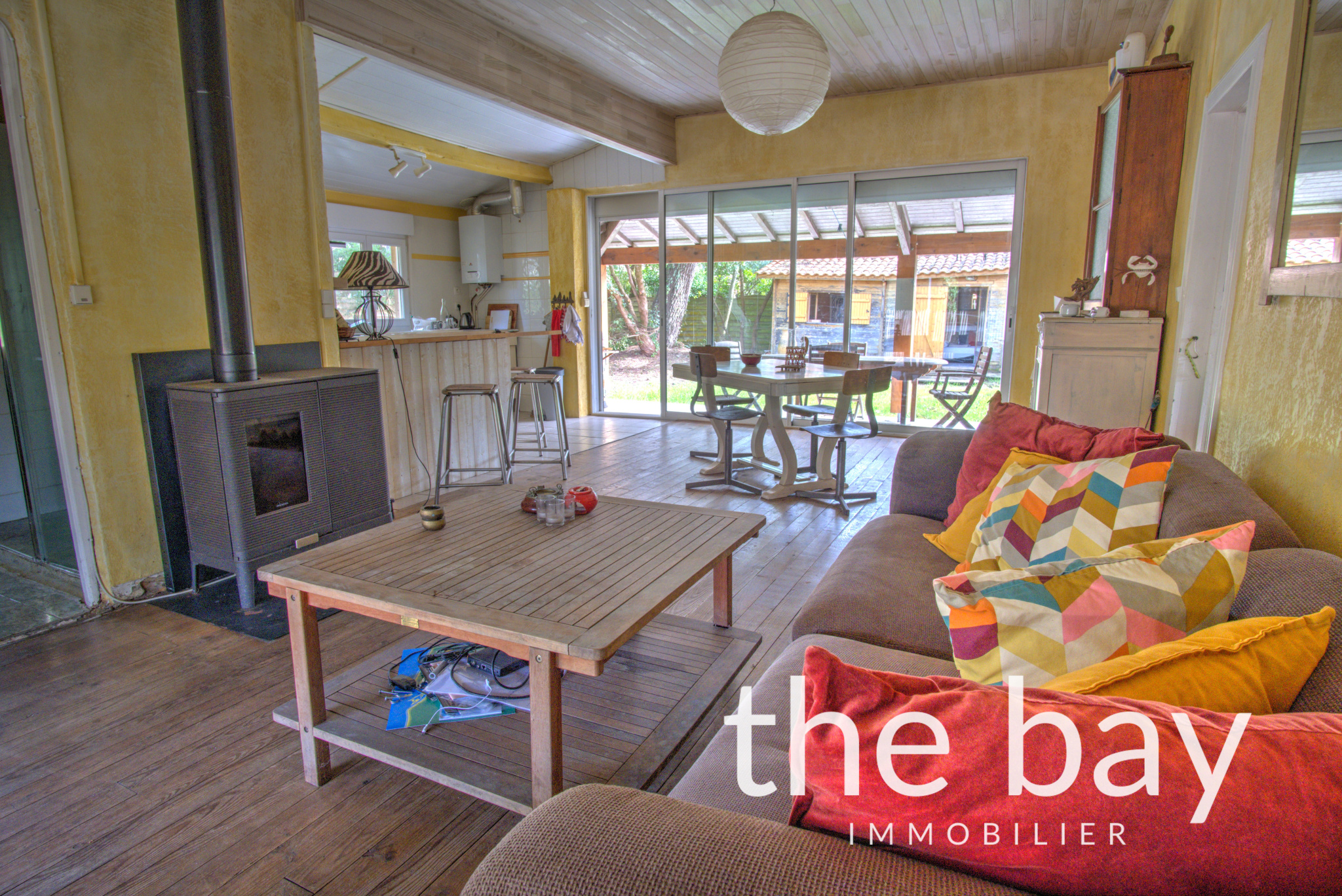 Dans un écrin de verdure au calme, cette charmante maison sur 750 m² de terrain arboré offre un séjour lumineux avec poêle à bois, une cuisine ouverte, deux espaces couchages, deux terrasses et une dépendance de 20 m² pour accueillir famille et amis.