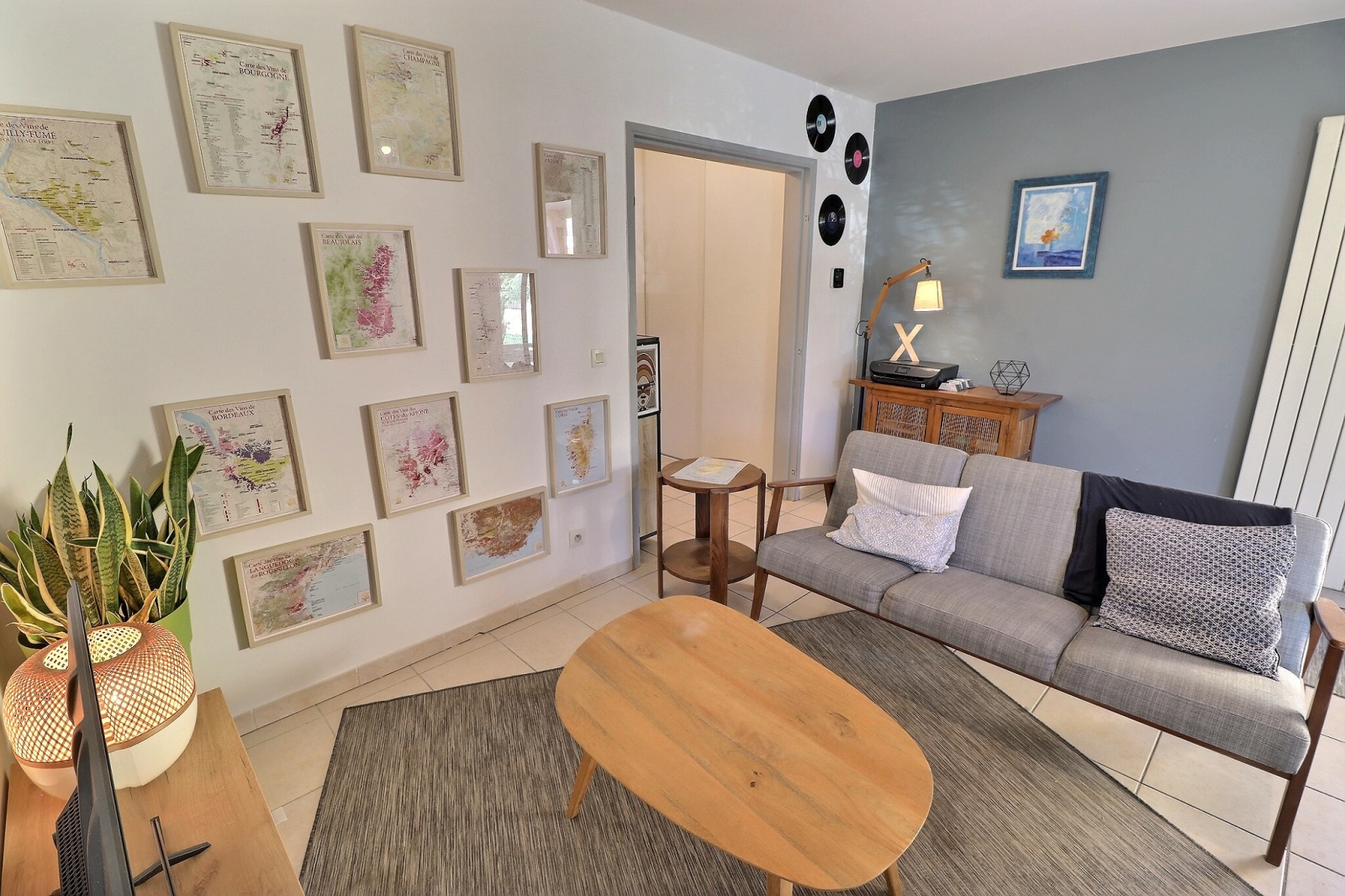 Le séjour s’ouvre sur une terrasse couverte et un jardin privatif, bénéficiant d’un ensoleillement matin et soir. Un vrai plus pour profiter d’un extérieur au calme.