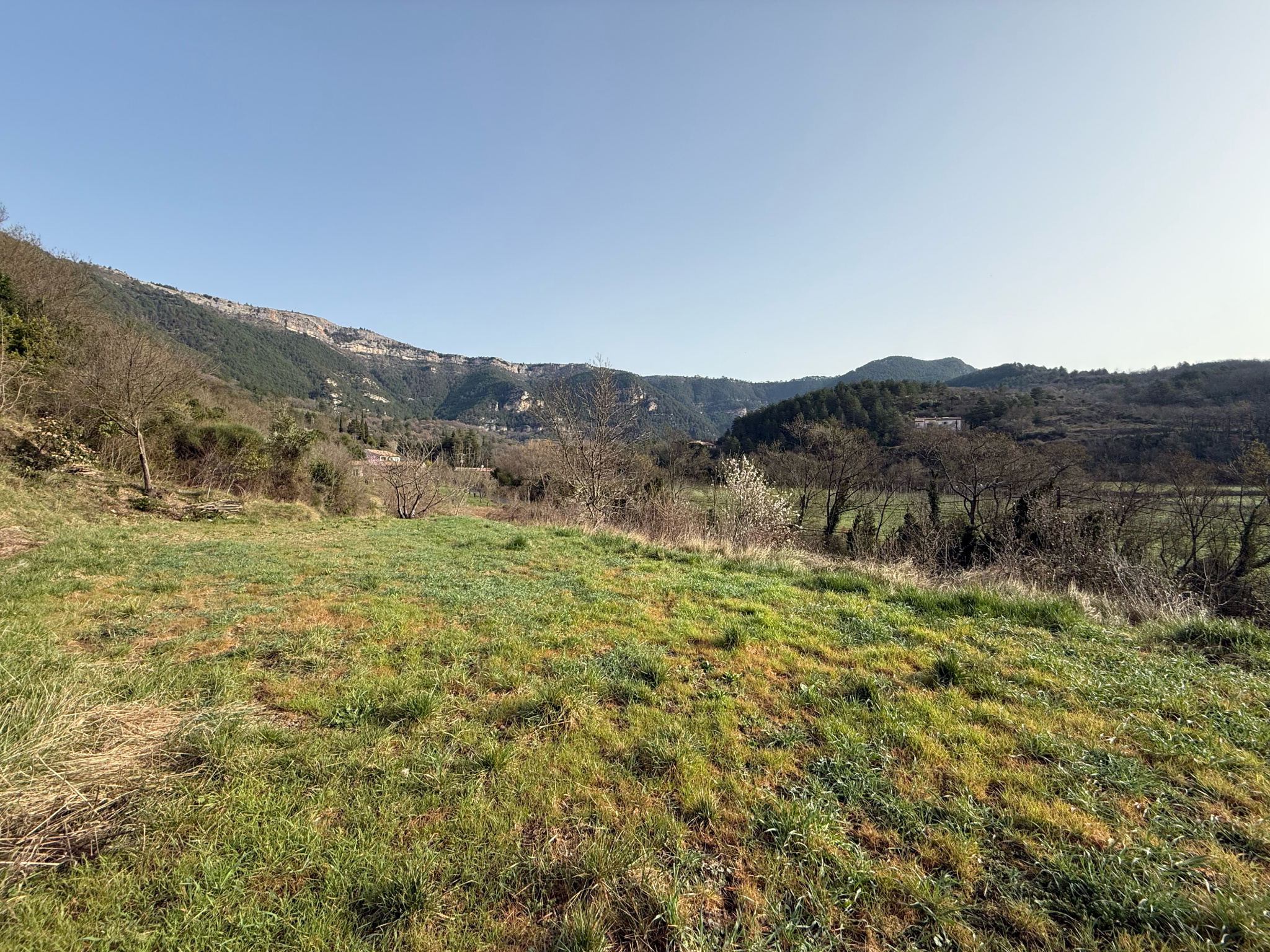 Un emplacement rare qui conjugue calme absolu, panorama exceptionnel et proximité du village (commerces, école) et des grands axes (Lodève à 10 min, Montpellier à 45 min).