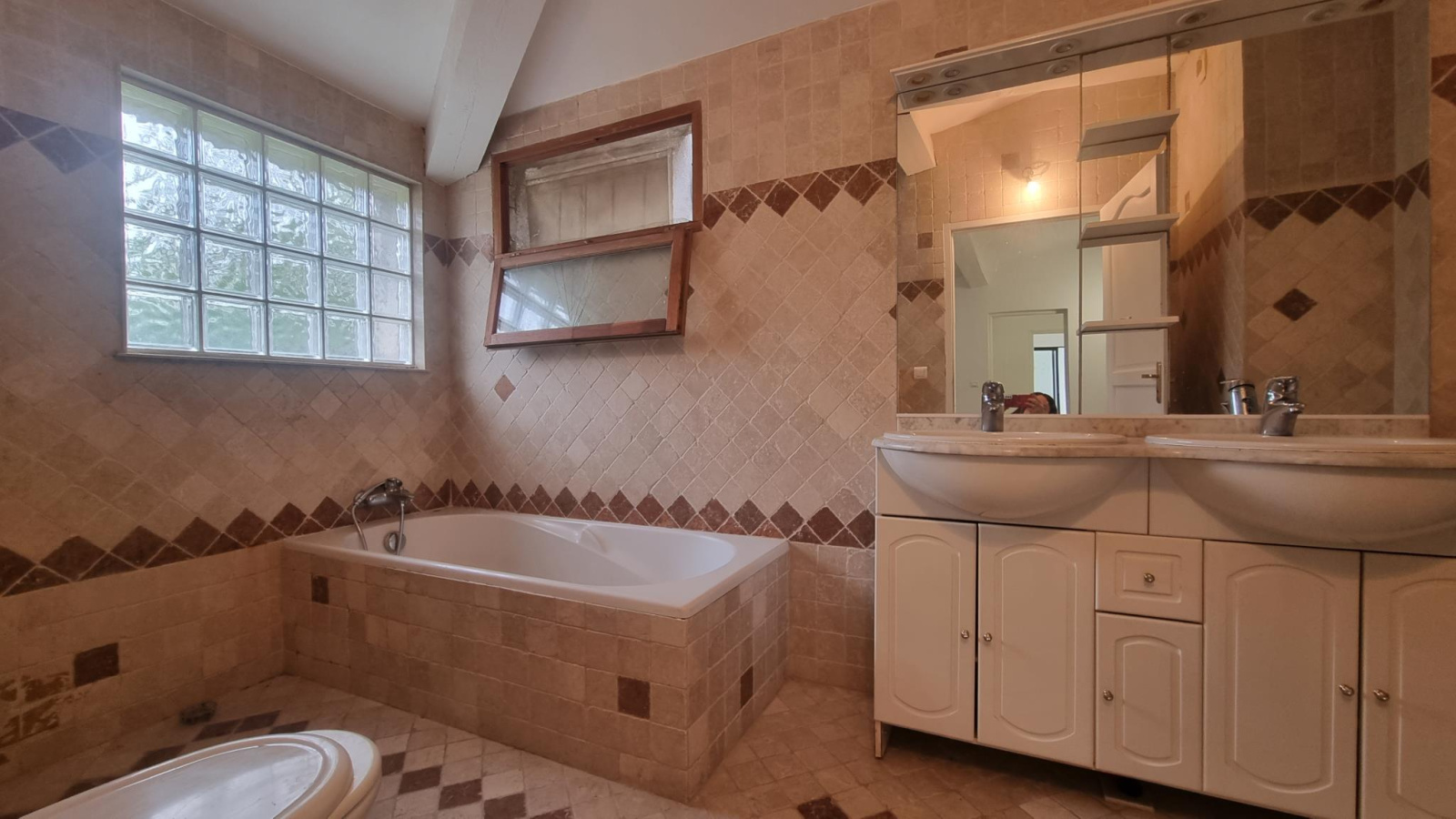 Il se compose d'une cuisine ouvrant sur un séjour lumineux, un salon, un bureau, quatre chambres, deux salles de bains, WC indépendant, une buanderie et un jardin privatif de 250m2 avec places de parking.