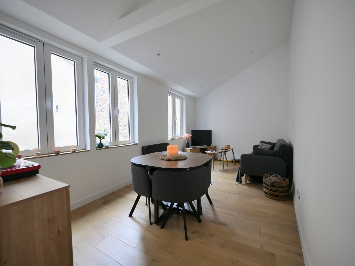 EXCLUSIVITE ! SAJA IMMOBILIER vous propose à REDON, hyper centre, un appartement T2 duplex au 1er étage de 53 m². Rénové avec goût, il comprend une entrée avec buanderie et dressing, une cuisine équipée, un espace bureau, un séjour de 23 m² et un wc. A l’étage une salle d’eau et une chambre. Rénovation en 2023, garantie décennale. Vendu loué 480 euros HC et le bail a été signé le 1er mars 2024 pour une durée de 6 ans. Copropriété de 5 lots et charges annuelles de 240 euros, syndic bénévole. A découvrir sans tarder ! www.sajaimmo.fr