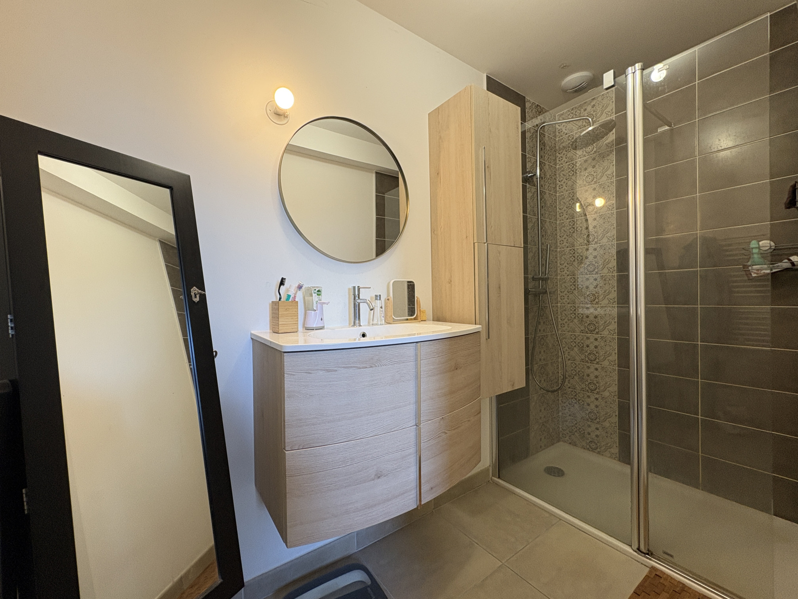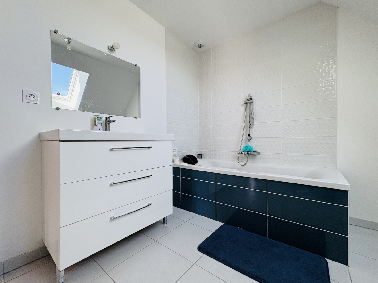 Un garage de plus de 16 m², accessible directement depuis la maison, ainsi qu’une buanderie, viennent compléter les prestations du bien.