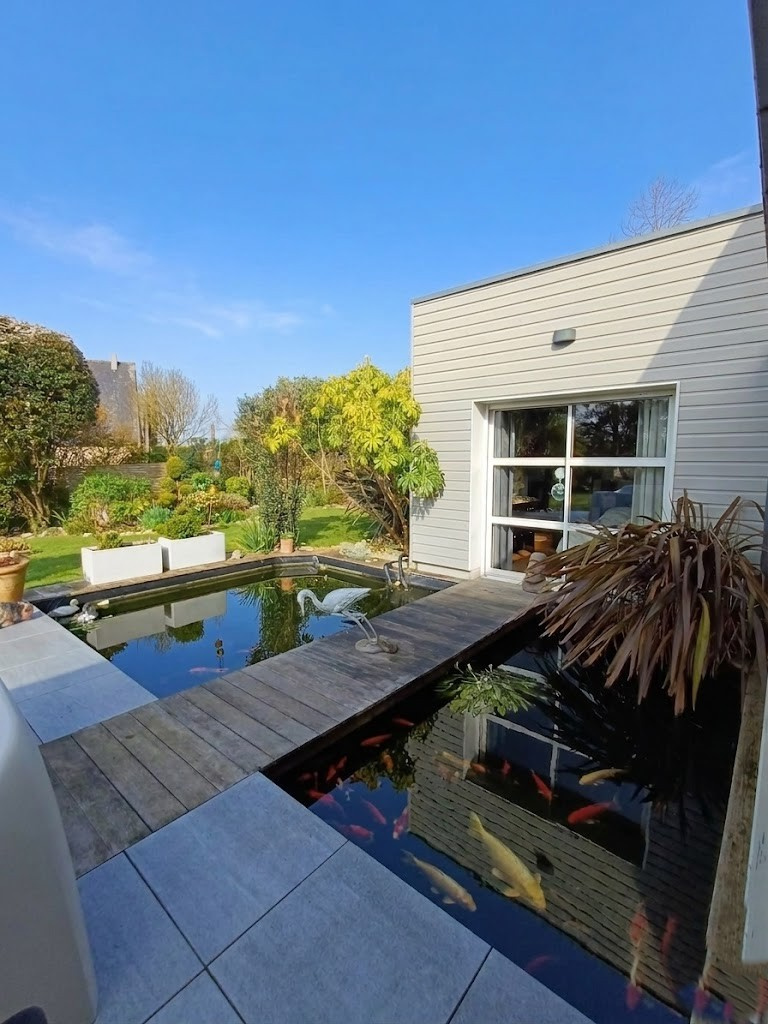 A l'extérieur, une terrasse prolonge les espaces de vie. La parcelle accueille également une piscine et un bassin à poissons. Un garage attendant à la maison, un abri de jardin et une serre complétent l'ensemble. Le terrain entièrement clos et sécurisé par un portail motorisé, permetle stationnement de plusieurs véhicules.