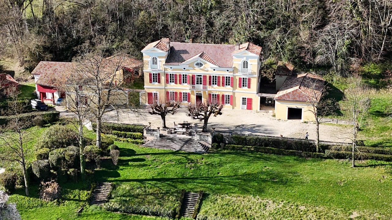 Cette élégante maison de maître des XIXe–XXe siècles, située sur près de 5 hectares dans le sud-ouest de la France entre Bordeaux et Toulouse, offre une vue magnifique sur la vallée du Lot. Datant de 1830, la propriété a été entièrement rénovée, alliant charme historique et confort moderne. Elle comprend de vastes espaces de réception, dix chambres avec salle de bain privative, une piscine, une maison de gardien et plusieurs dépendances. Entourée de jardins paysagers inspirés de l’Italie, elle propose un cadre de vie paisible et raffiné. Idéale comme résidence familiale ou pour un projet touristique, il s’agit d’un domaine rare et exceptionnel.