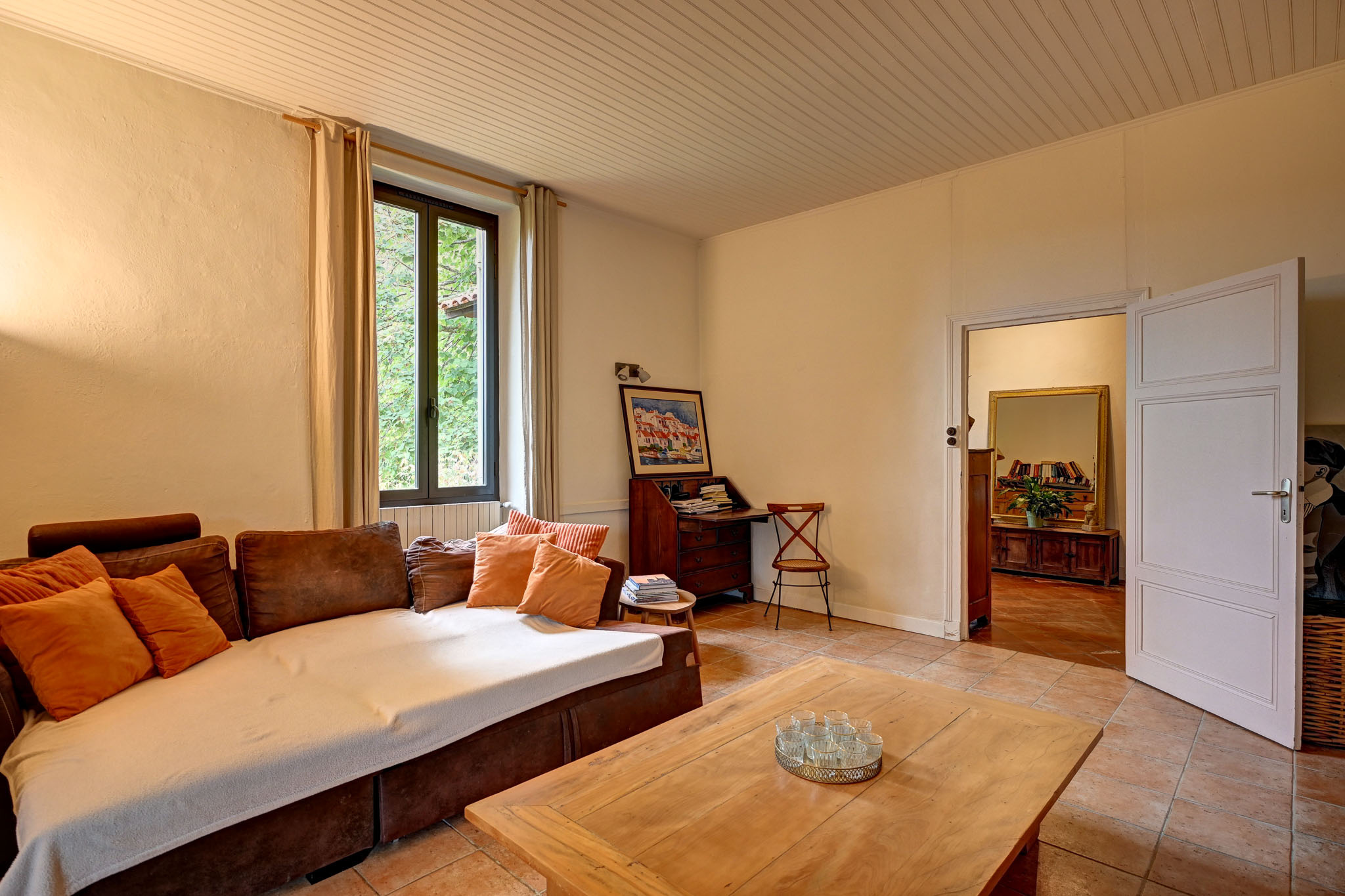 La bâtisse principale, entièrement rénovée (environ 200 m²), allie avec élégance le charme de l’ancien et le confort moderne.