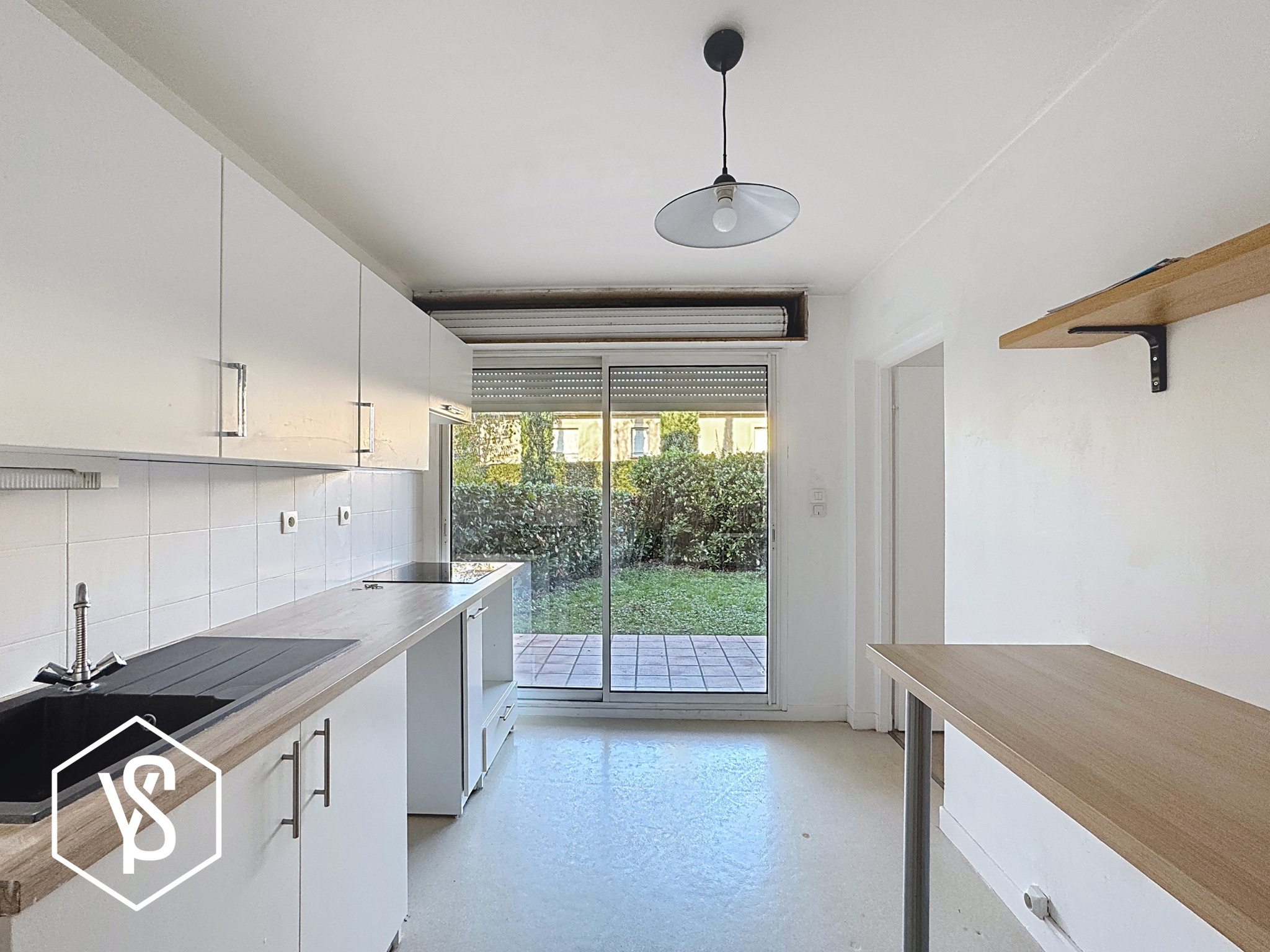 La cuisine séparée, fonctionnelle, bénéficie d’un accès direct au jardin.