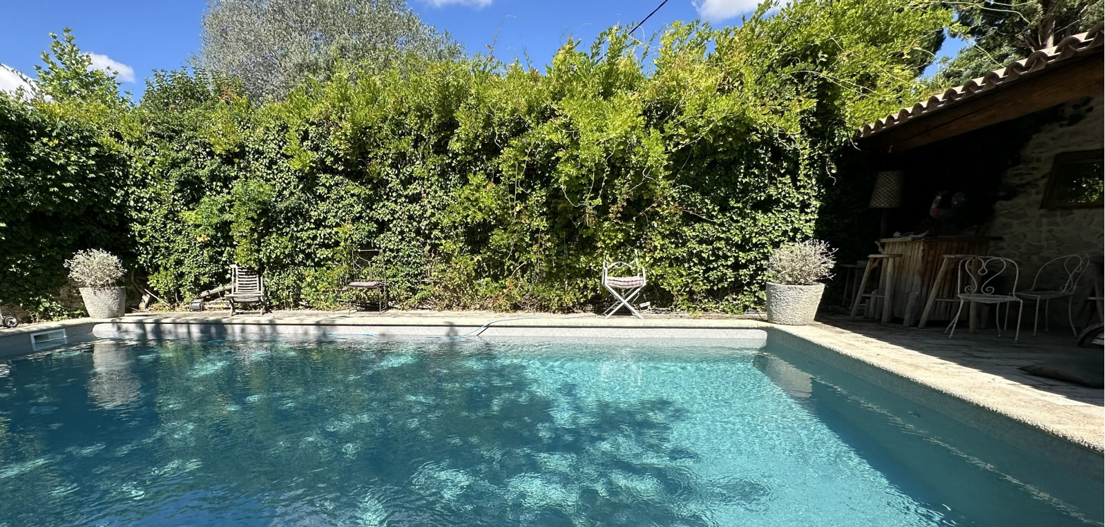LE THOR : Découvrez le charme UNIQUE de cette maison idéalement située alliant commodités à pied et sérénité absolue; ce bien d'exception bénéficie d'un accès et d'une vue apaisante sur la Sorgue. Dès l'entrée vous serez séduit par un espace de vie généreux et lumineux d'environ 50M2, véritable coeur de la maison, ouvert largement sur le jardin et la rivière. Une cuisine fonctionnelle baignée de lumière.WC invités, buanderie. Le confort du plain-pied et un étage modulable : Au rez-de-chaussée une belle suite parentale ( SDE, dressing, WC). A l'étage : une SDE avec WC, 3 chambres dont une traversante, idéale pour aménager une salle de jeux, un bureau .... L'extérieur est dédié à la détente; le jardin arboré au calme absolu et sans aucun vis-à -vis, accueille une belle piscine avec son pool-house dans un cadre intimiste. La propriété close permet de stationner vos véhicules à l'intérieur... Je me ferai un plaisir de vous faire découvrir cette propriété...Â