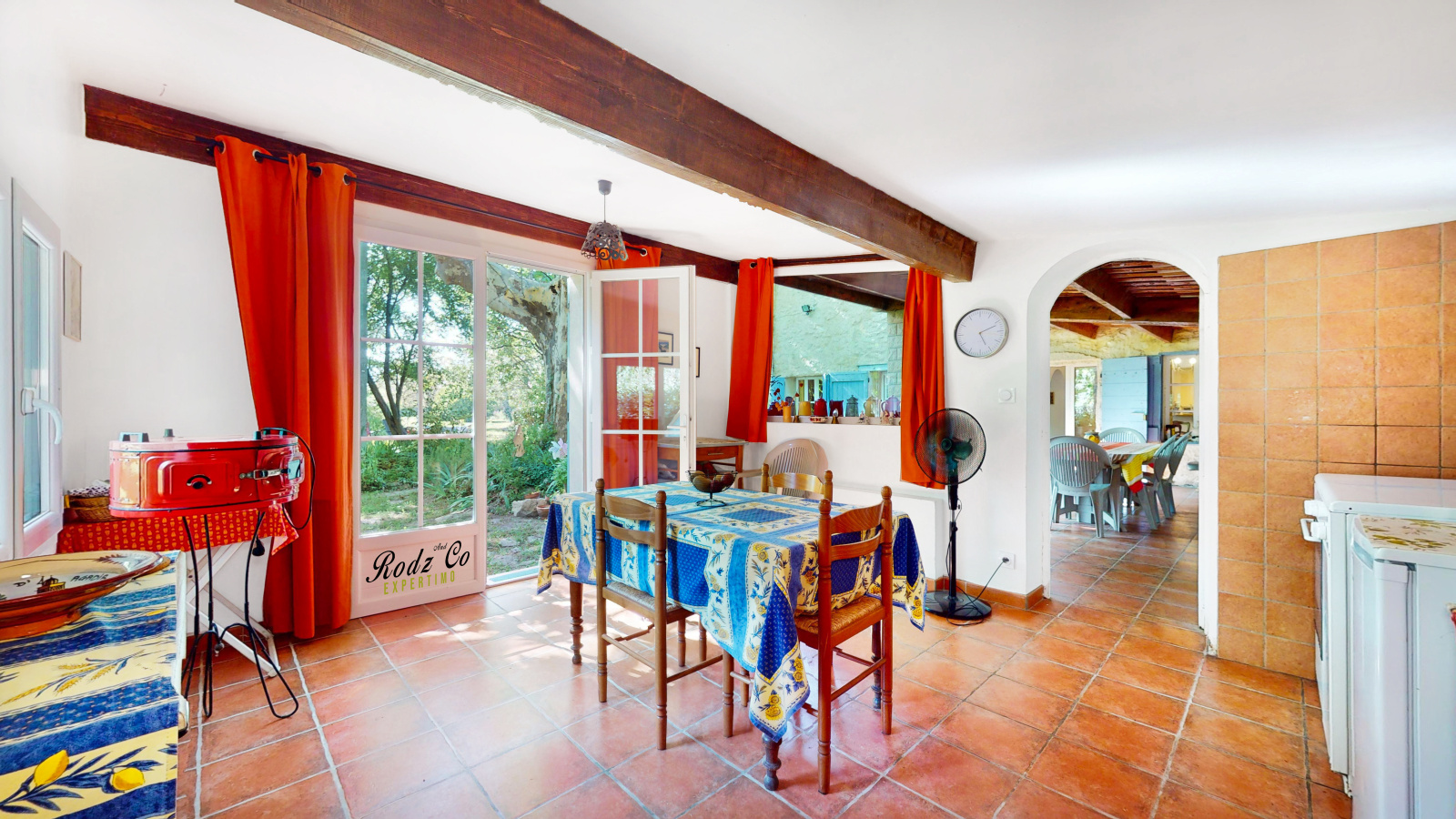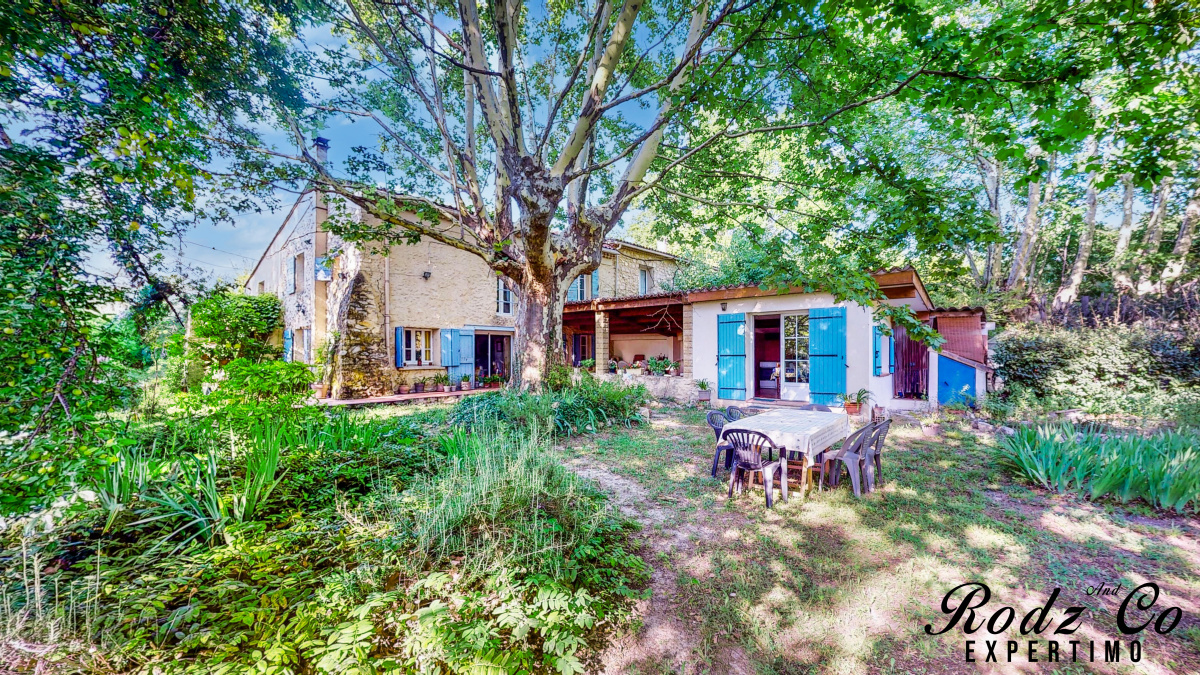 Le Mas en pierres anciennes apparentes, dans un excellent état d'entretien, composé d'une extension récente (terrasse couverts et cuisine d'été) ainsi que d'un garage annexe, mitoyen avec une partie de Mas ancien voisine sans vis-à-vis, est construit sur une parcelle de terrain d'environ un hectare et demi.