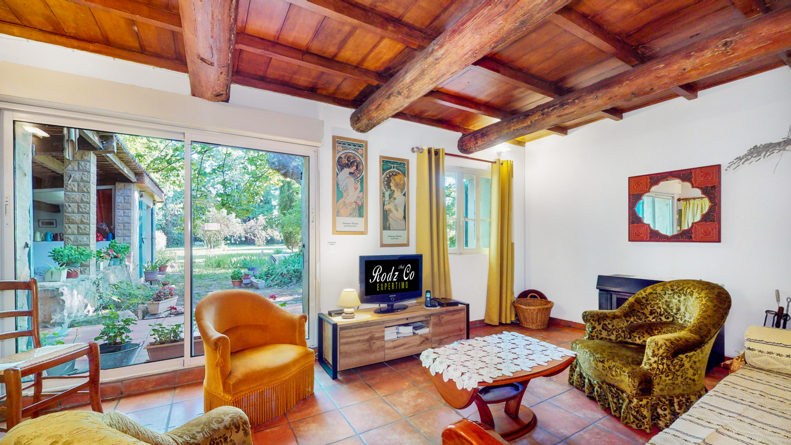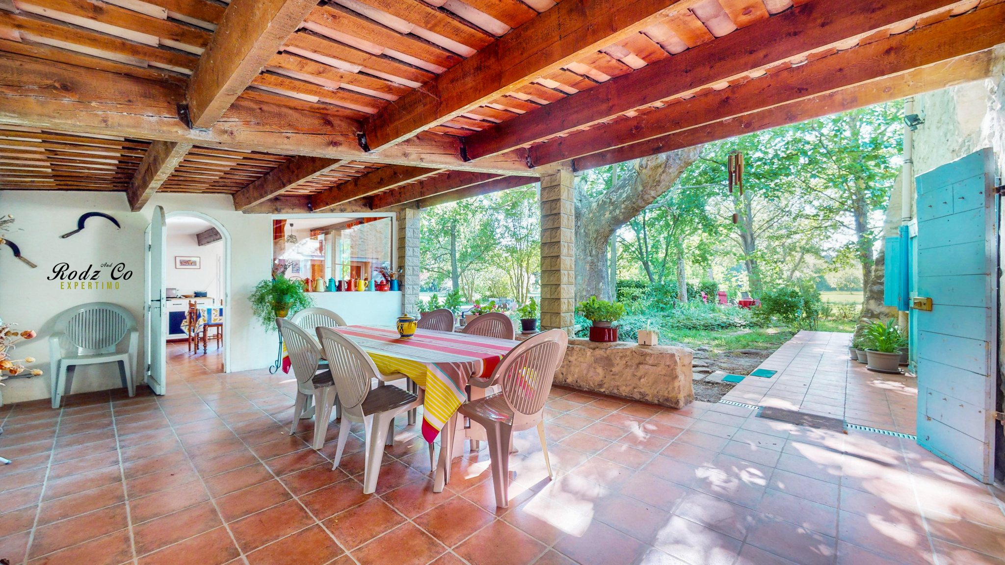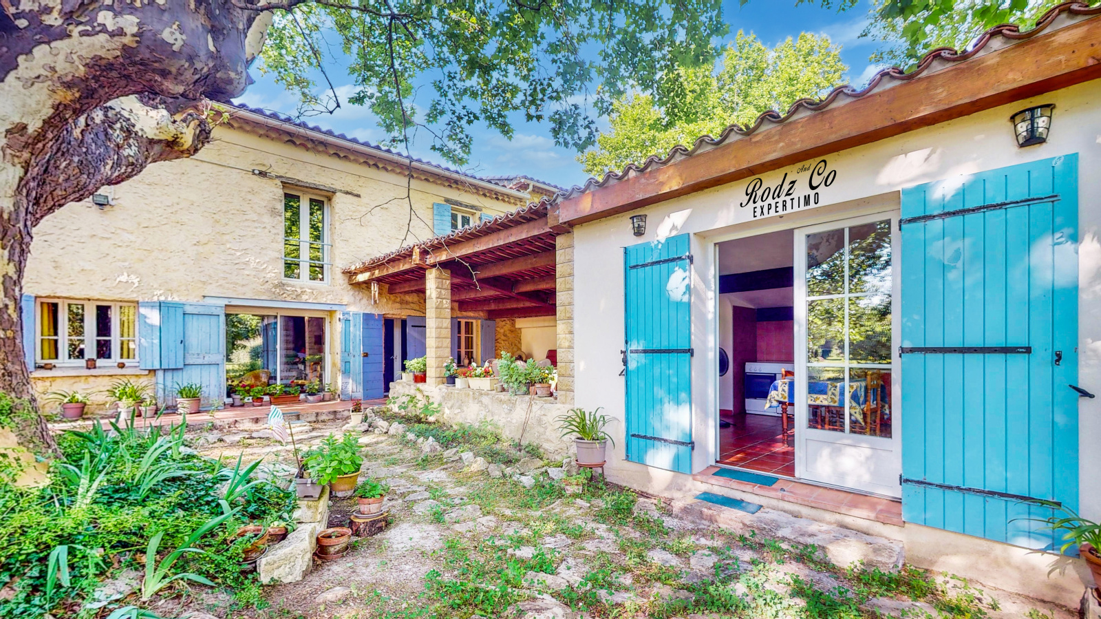 Mas ancien semi-mitoyen, orienté Sud-Ouest, réparti sur deux niveaux, avec un garage, trois terrasses dont une couverte, une cuisine d'été et un gîte indépendant situé en campagne au Sud-Ouest du village du Thor en zone agricole, sur un parc arboré d'environ un hectare et demi.