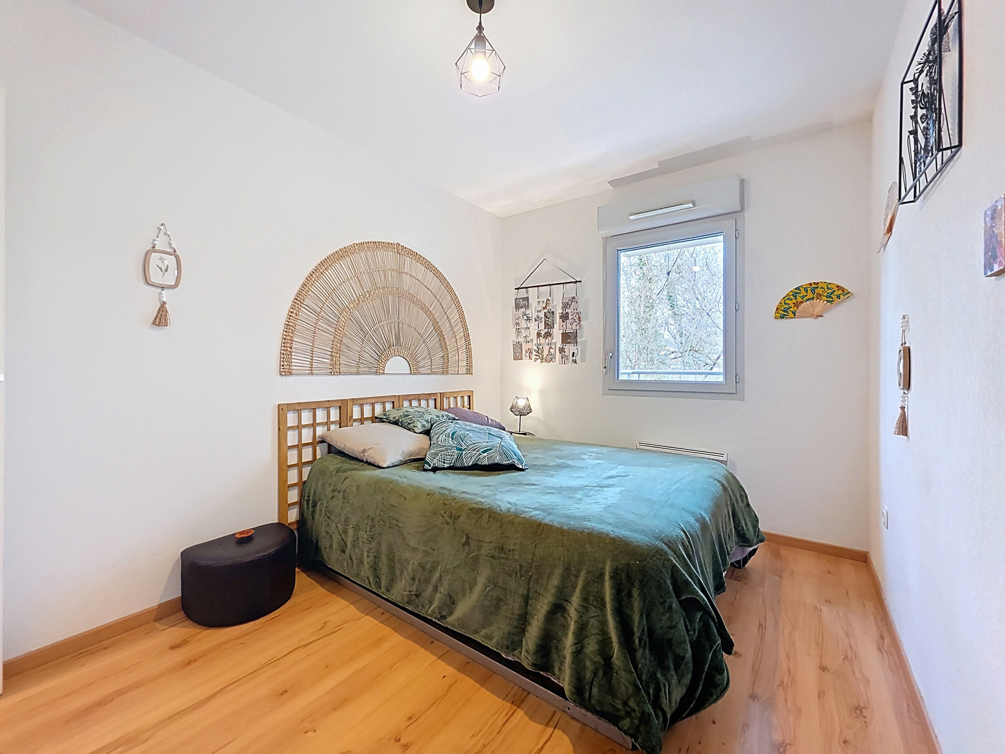 Il se compose d'une pièce de vie agréable ouvrant sur un balcon donnant sur un espace boisé, offrant une vue dégagée et verdoyante. La cuisine est fonctionnelle, les deux chambres sont bien proportionnées et la salle de bains est soignée (avec une fenêtre). Le bien dispose également de deux places de parking privatives, un atout appréciable au quotidien. Sa localisation proche des commodités et des axes de transports en fait un logement pratique, aussi bien pour une résidence principale que pour un investissement.