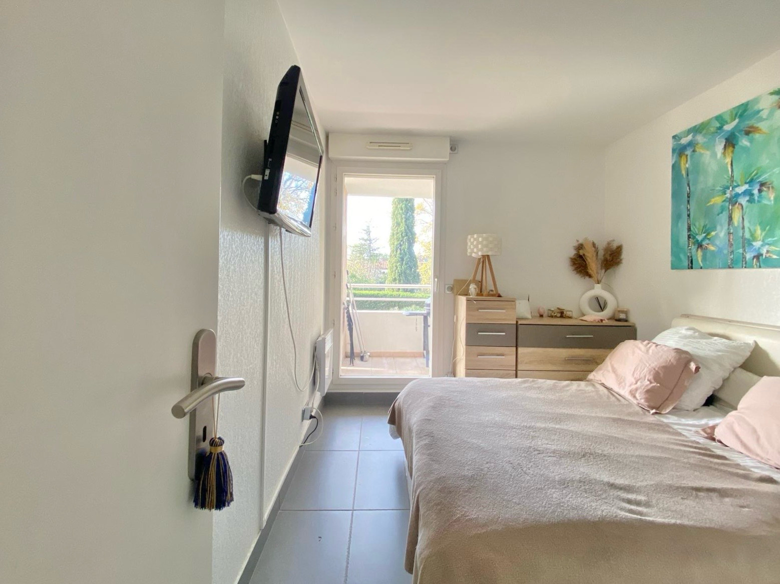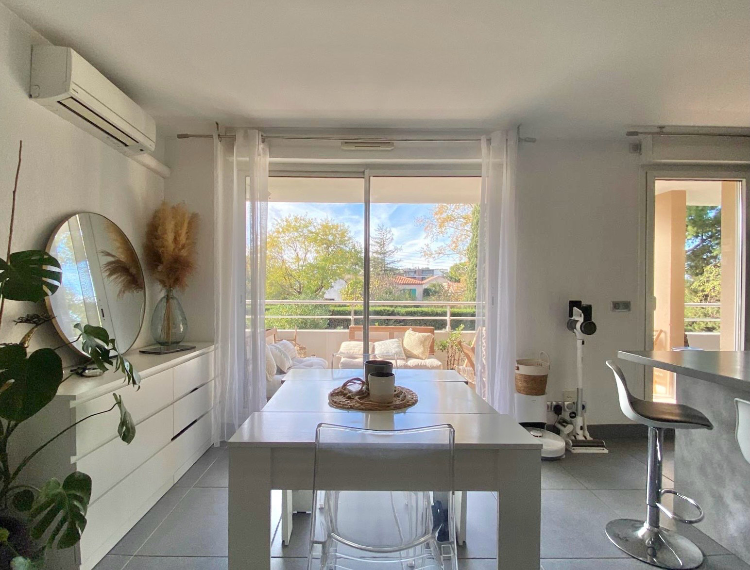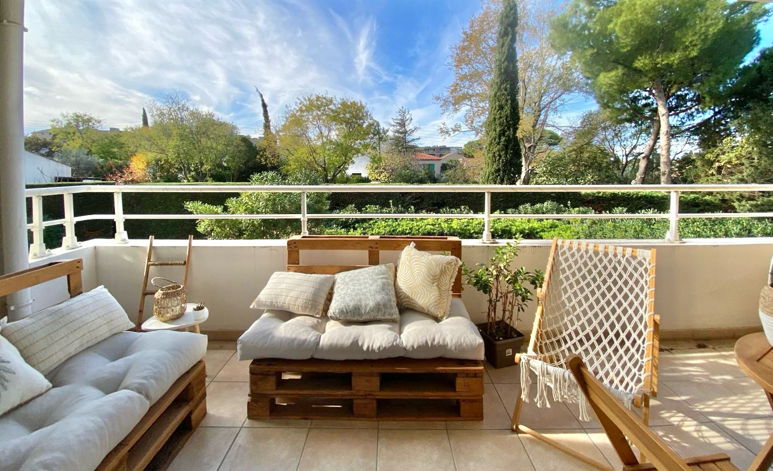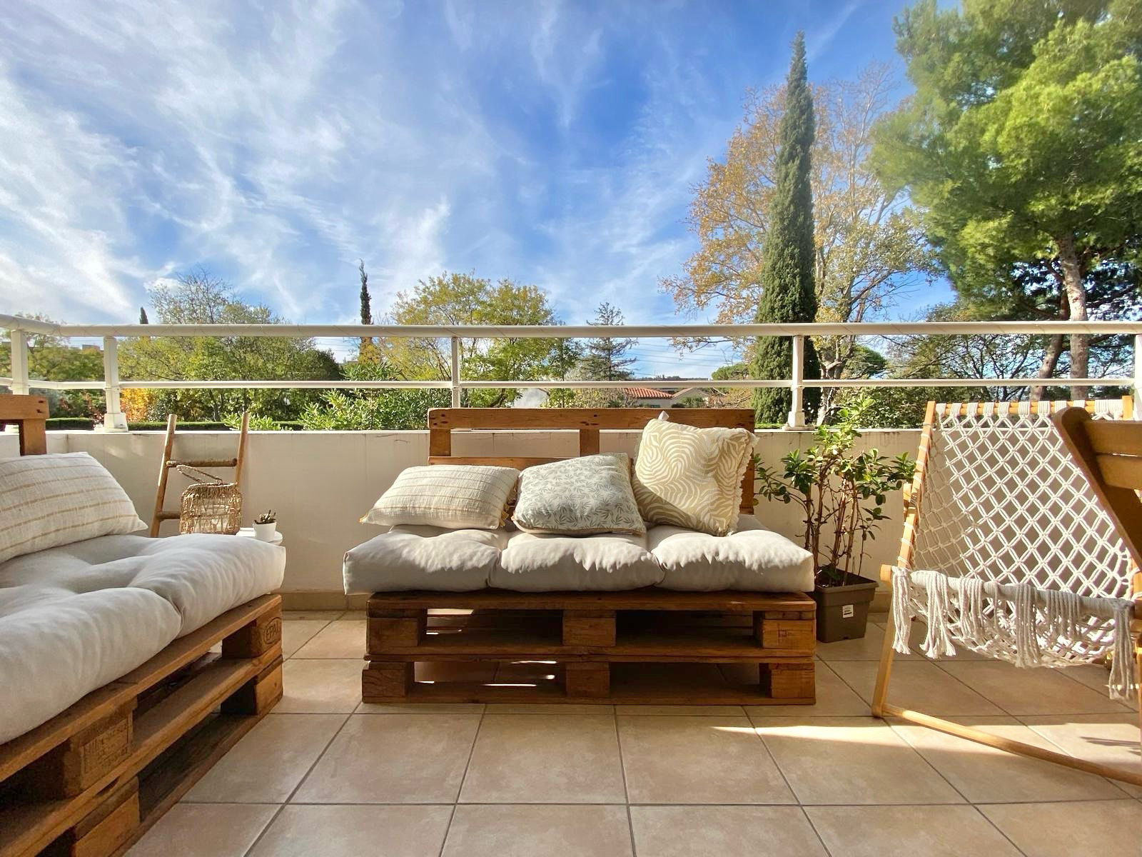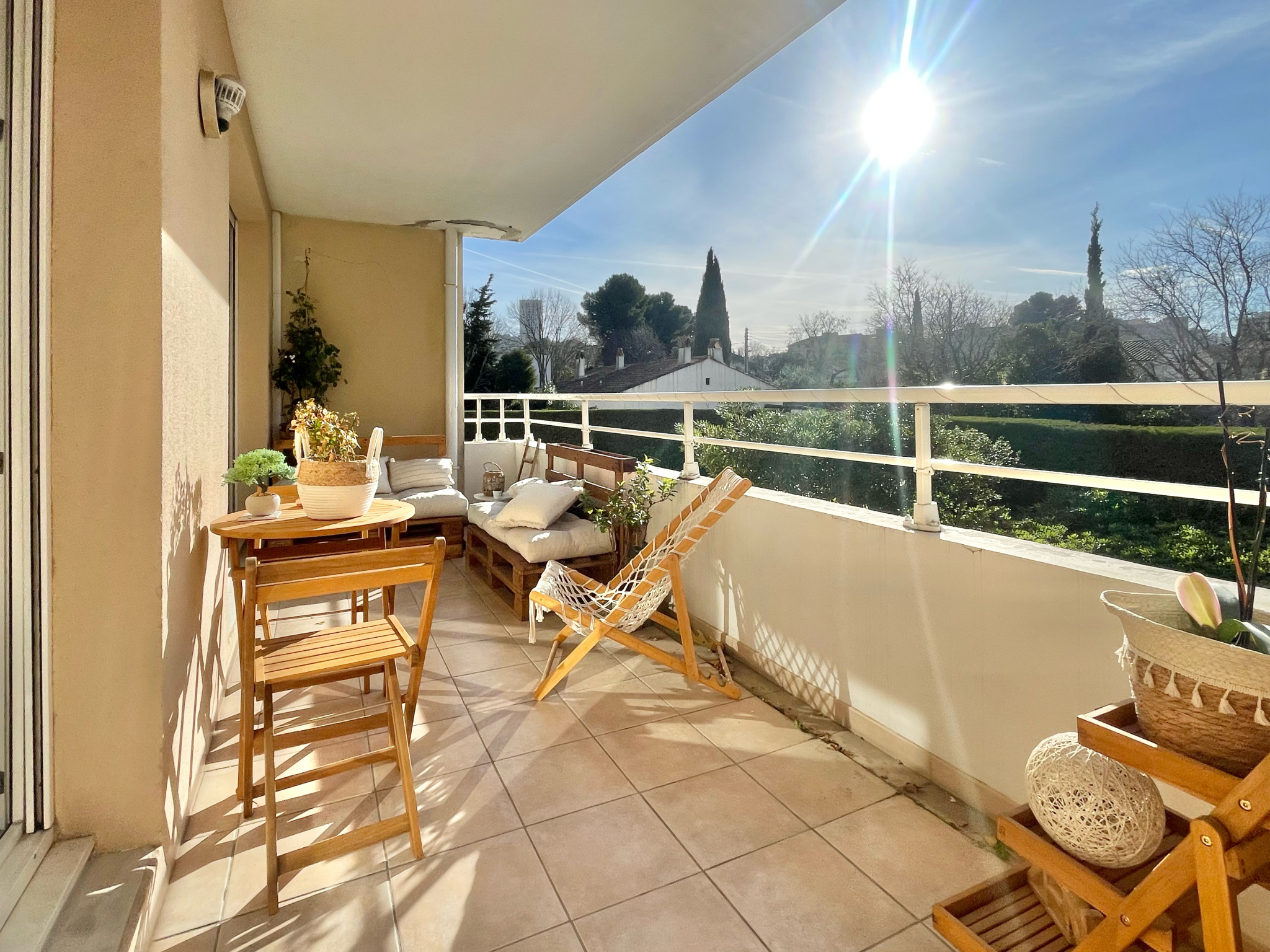 Aucun vis à vis, vue dégagée avec grand panorama de ciel bleu. Climatisation dans le salon, chambre avec porte fenêtre donnant accès sur la terassse .