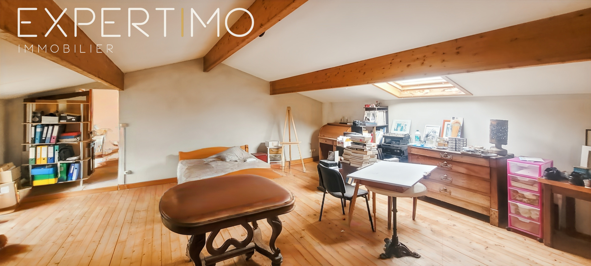 À l'étage : 2 chambres 41 m² et 17 m² spacieuses et rangements.