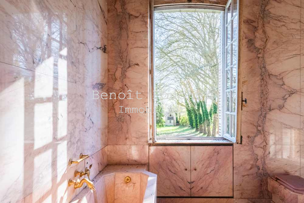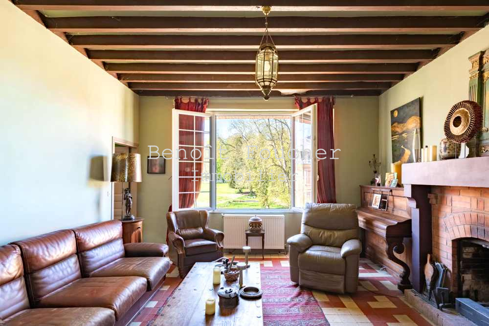 Le château d'environ 800m2 se développe sur trois niveaux avec sur chacun d’entre eux une très belle hauteur sous plafond de près de 4m et une multitude d’ouvertures offrant une luminosité rarement vue pour de tels édifices. La façade en pierre de taille associée à la brique et la toiture de style « mansart » sont caractéristiques du XVIIème et XVIIIème siècles. Le château, baigné de lumière avec sa quadruple orientation (principalement Nord-Ouest et Sud-Est), offre une vue idyllique sur le parc du domaine, sa très belle fontaine en état de fonctionnement, l’étang, la piscine et au loin les allées cavalières.