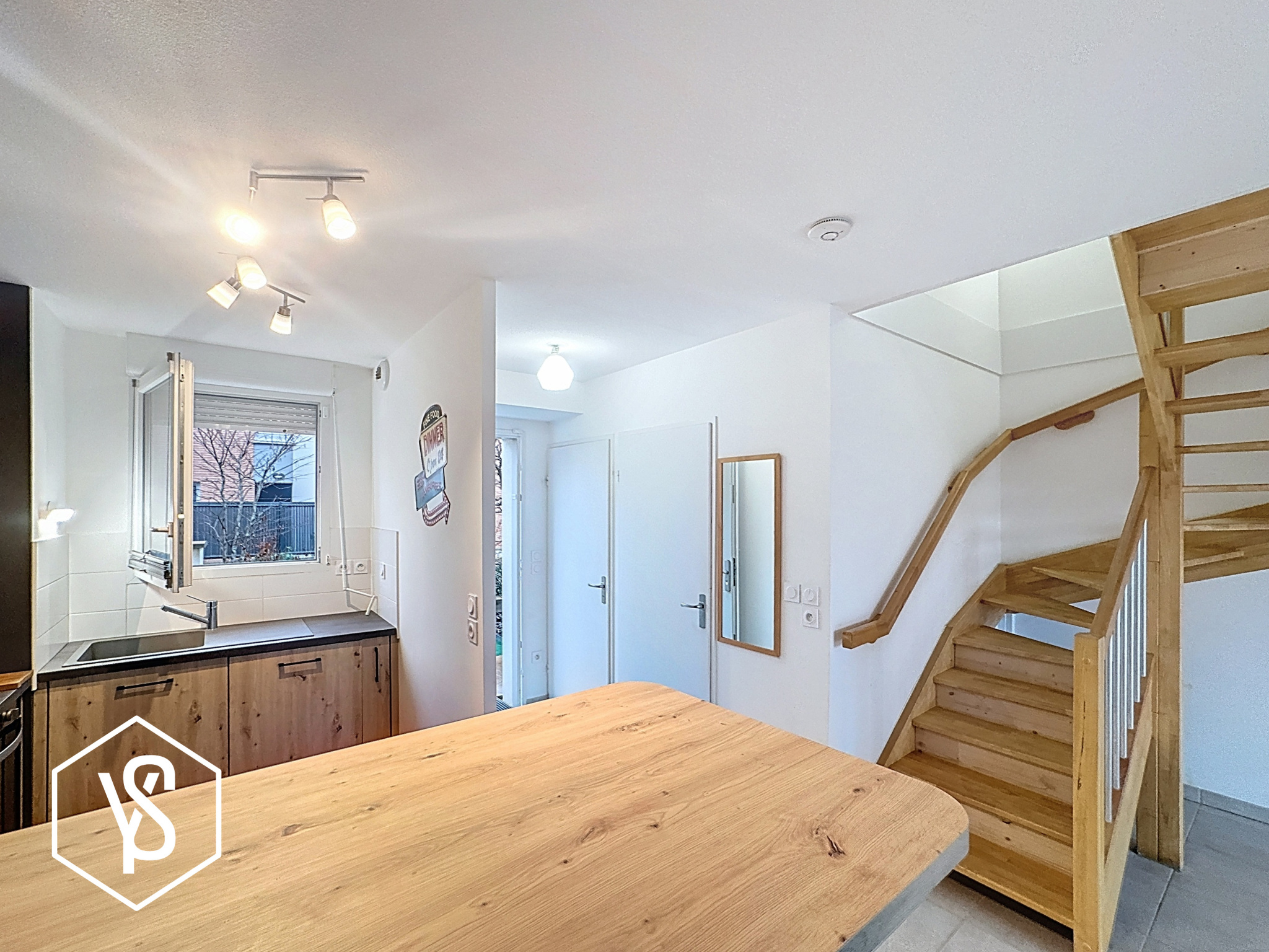 Au rez-de-chaussée, vous bénéficierez d’une agréable pièce de vie de 36 m² comprenant séjour et cuisine ouverte entièrement équipée, ainsi que d’un WC indépendant et d’un cellier/réduit.
