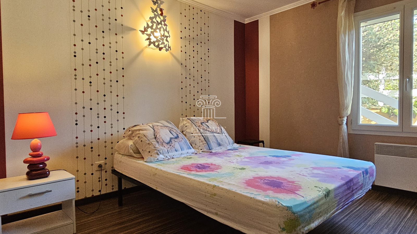 Au rez-de-jardin, vous disposerez d'une chambre, d'une salle de bain avec balnéo et douche, une buanderie et un garage pouvant servir de cuisine d'été.