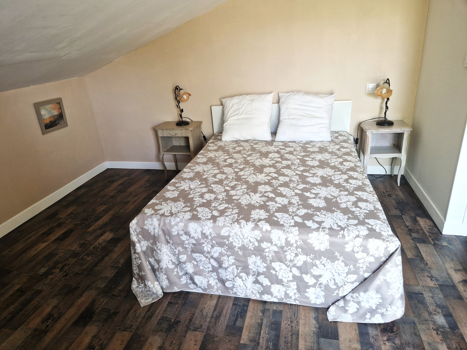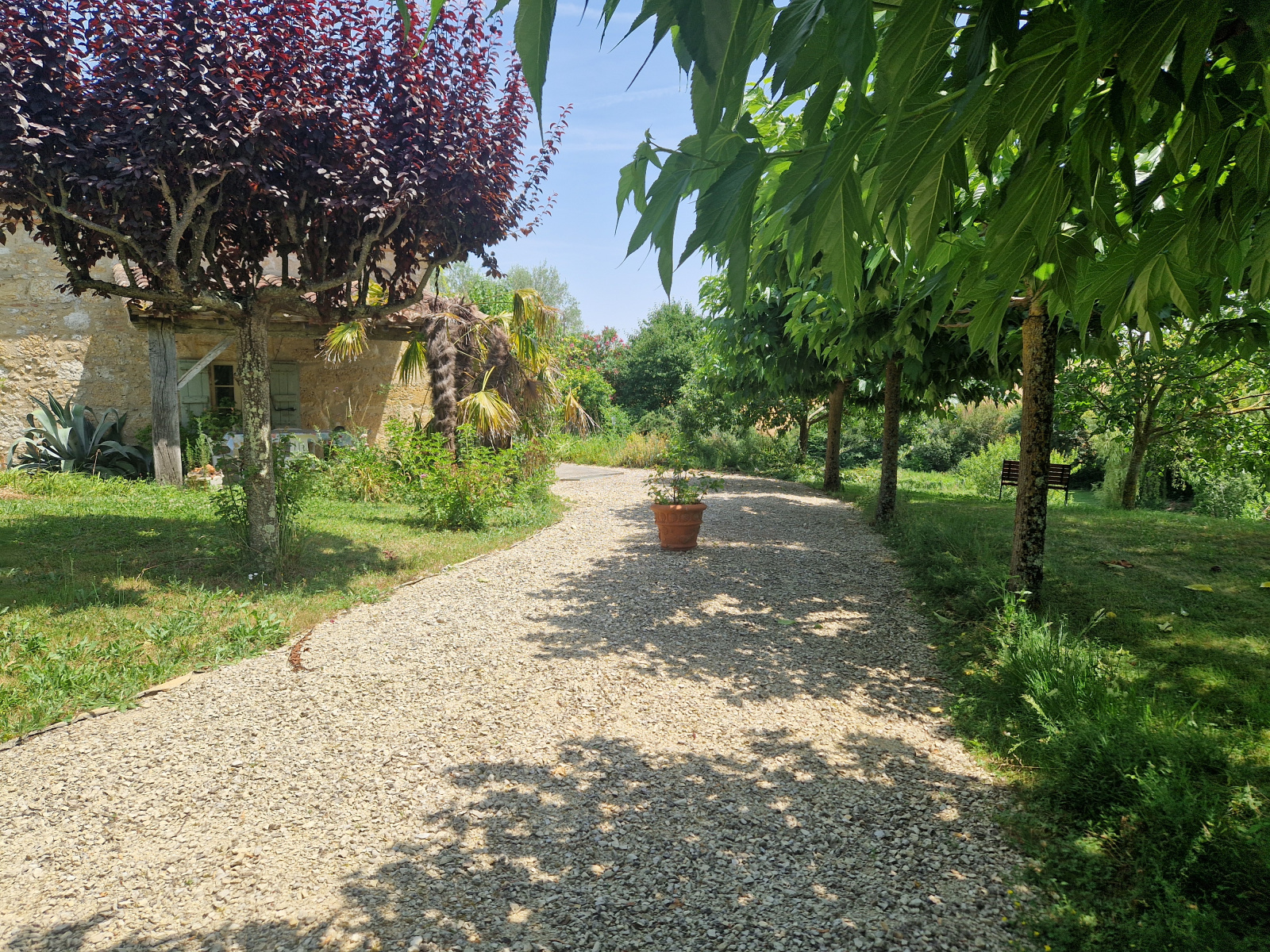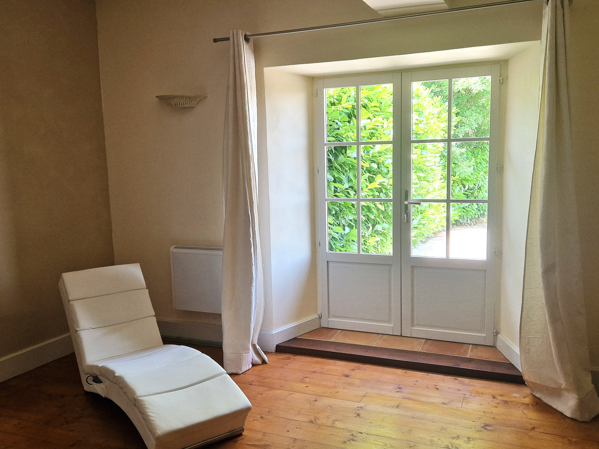 Au-delà de la cour se trouve une autre entrée, plus simple, menant à la maison d’amis : un logement totalement indépendant comprenant deux chambres, une pièce de vie ouverte et sa propre terrasse.