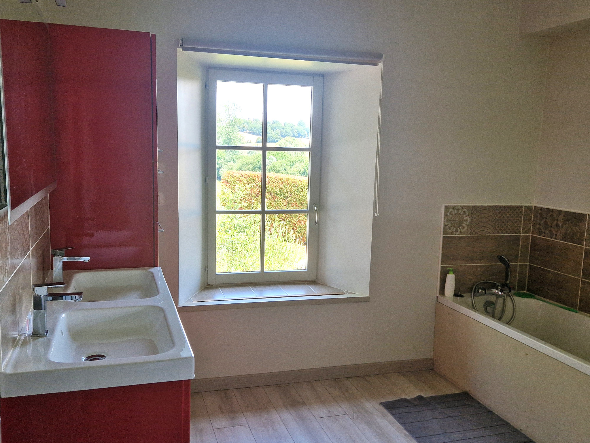 Baignoire, 2 vasques, douche, WC