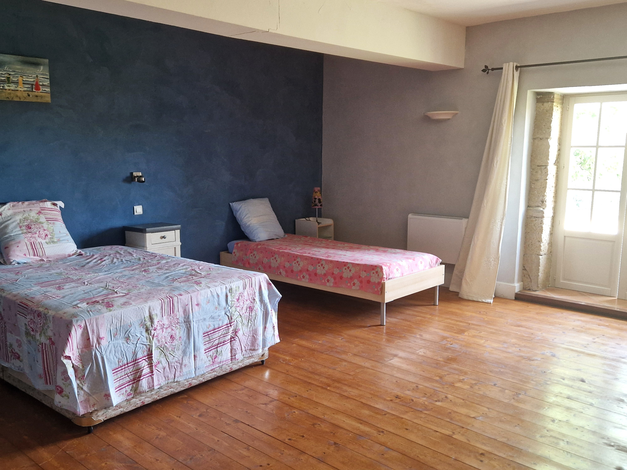 En traversant le salon, on découvre l’espace bureau, qui a été divisé en deux pour abriter l’importante et très appréciée collection de livres du propriétaire actuel. Ce bureau fait le lien entre la maison d’origine et la grange, laquelle a été aménagée en trois chambres spacieuses, chacune avec sa propre salle de bain attenante. Deux de ces chambres disposent également d’un accès direct vers l’extérieur, ce qui les rendrait parfaites pour une activité de chambres d’hôtes.
