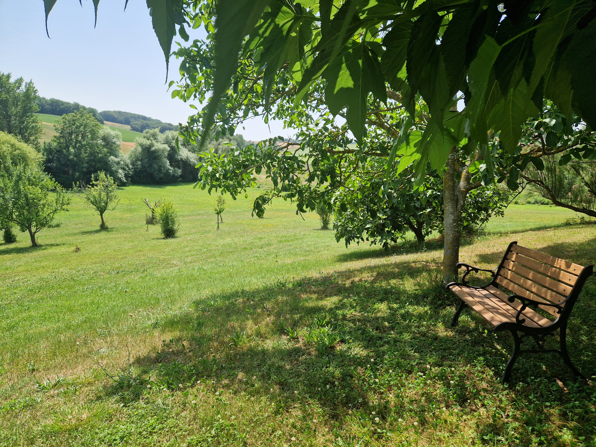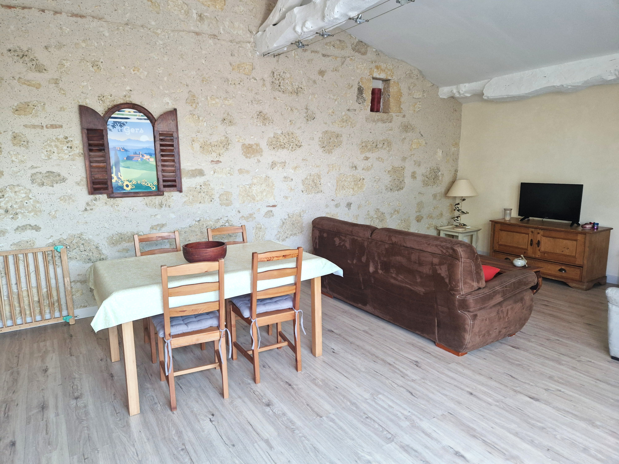 Belle maison ancienne en pierre, idéalement située près d’un joli petit village entre Fleurance et Lectoure, ce qui rend les courses très faciles tout en profitant du calme et de la tranquillité de la magnifique campagne. Implantée sur plus de 2 hectares de terrain en pente douce descendant vers un ruisseau paisible, la maison principale domine son propre terrain, les champs et les bois alentour, ainsi que l’un des plus jolis villages du Gers.