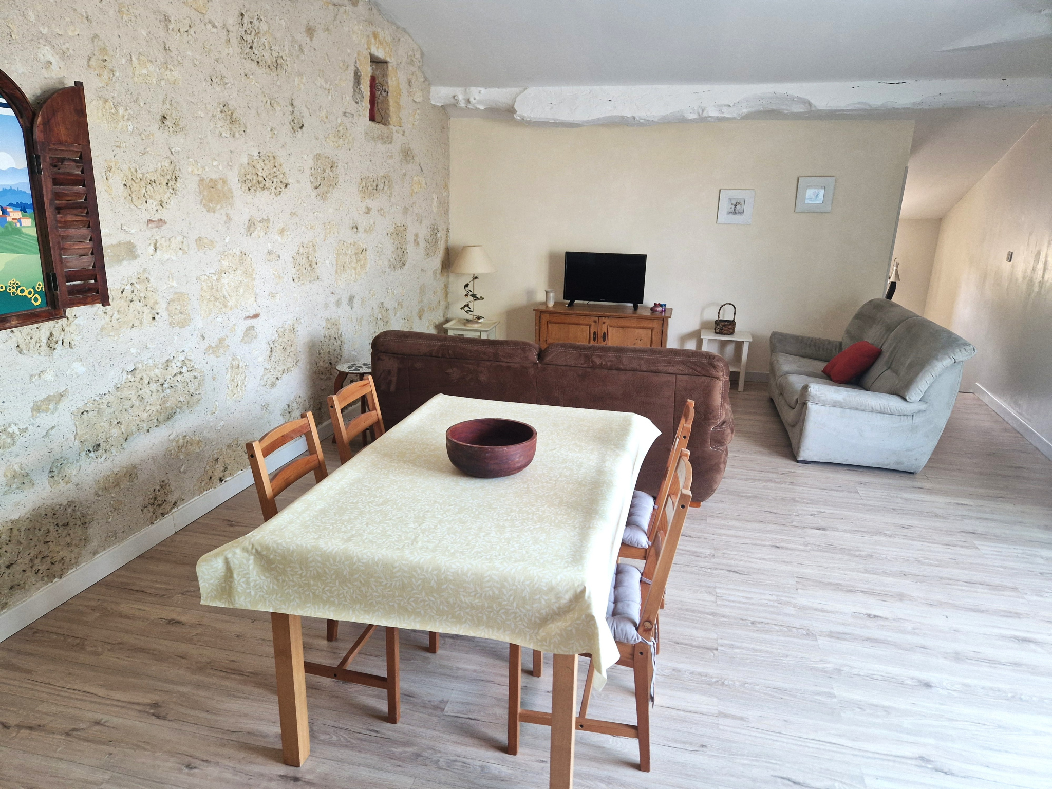 Coin cuisine, sam, salon, accès au terrasse