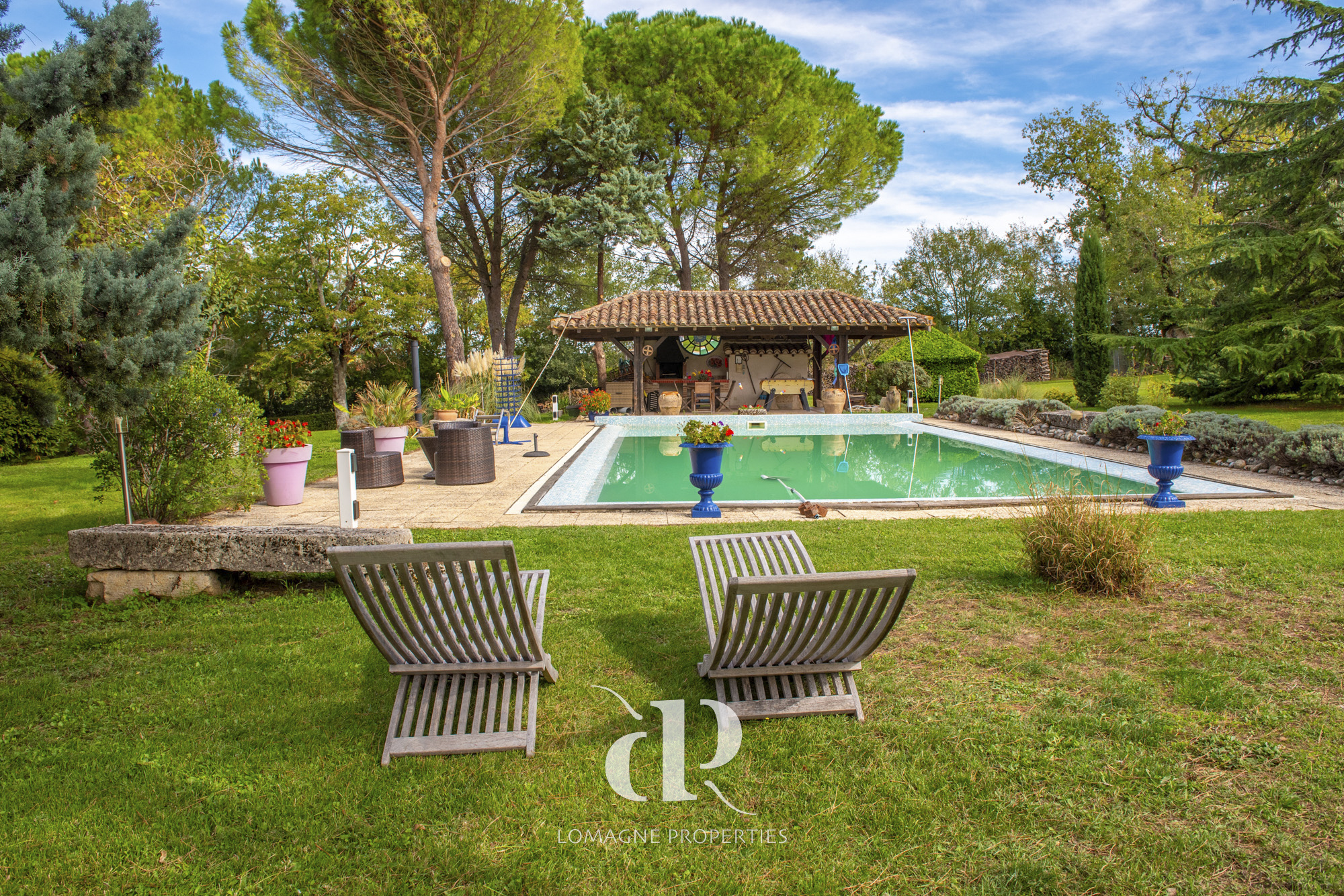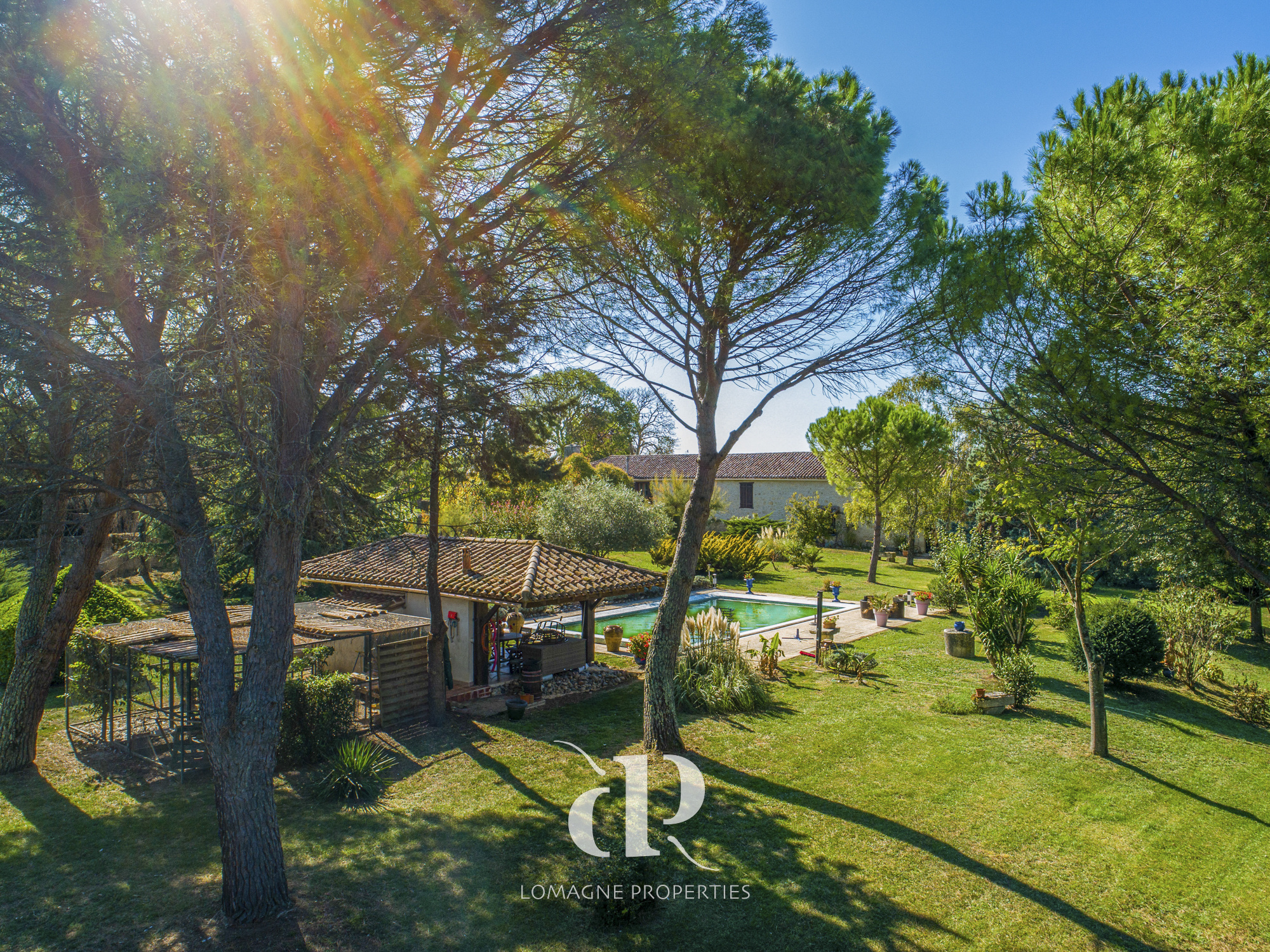 Lomagne Properties présente ce manoir unique avec des caractéristiques de château situé à la périphérie d'un village typique de Gascogne, bénéficiant d'un restaurant et d'un château étonnant. Une cour intérieure est créée par les dépendances et une clôture majestueuse entoure le jardin de devant. La richesse des éléments d'origine, comme le remarquable escalier, les immenses cheminées, les peintures murales d'époque et les poutres imposantes ont été bien préservés lors de la rénovation, au cours de laquelle rien n'a été laissé au hasard. Le manoir offre 3 chambres spacieuses et est complété par une maison d'hôtes indépendante de 2 chambres dans l'une des dépendances. Ces dernières offrent un grand espace pour créer d'autres maisons d'hôtes. Au milieu du parc arboré, vous trouverez une piscine avec des installations extérieures. Une propriété exceptionnelle à voir dès que possible.