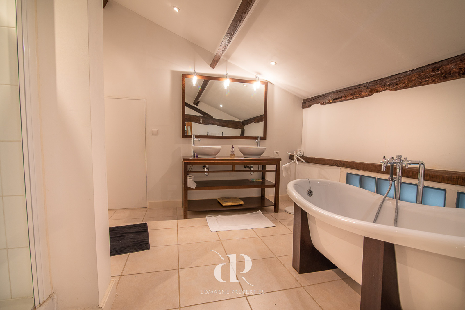 o Salle de bains - 11,5 m² - baignoire, douche, WC, double lavabo