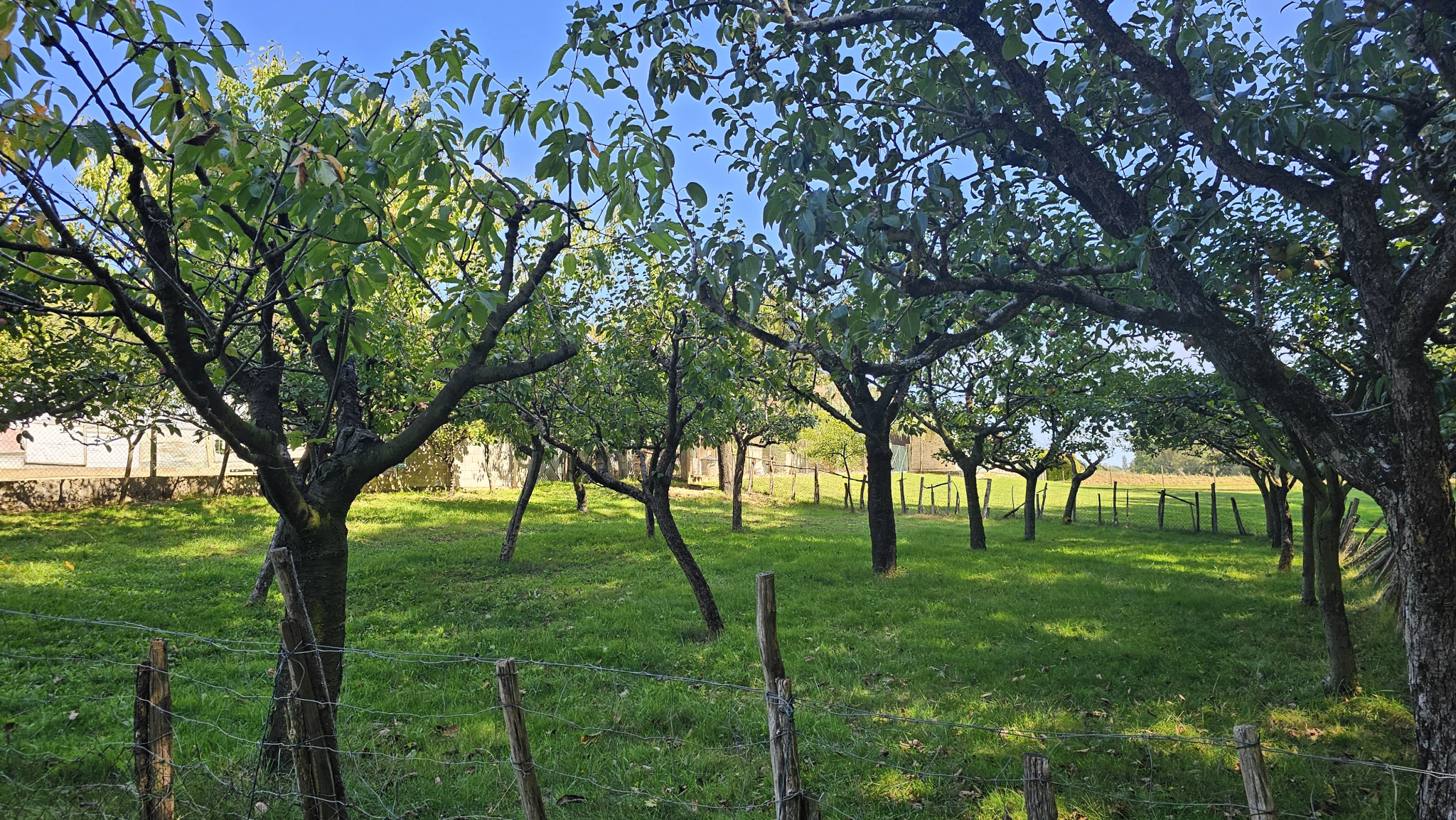 Le terrain entièrement clos de 9400m² accueille un potager et un verger.