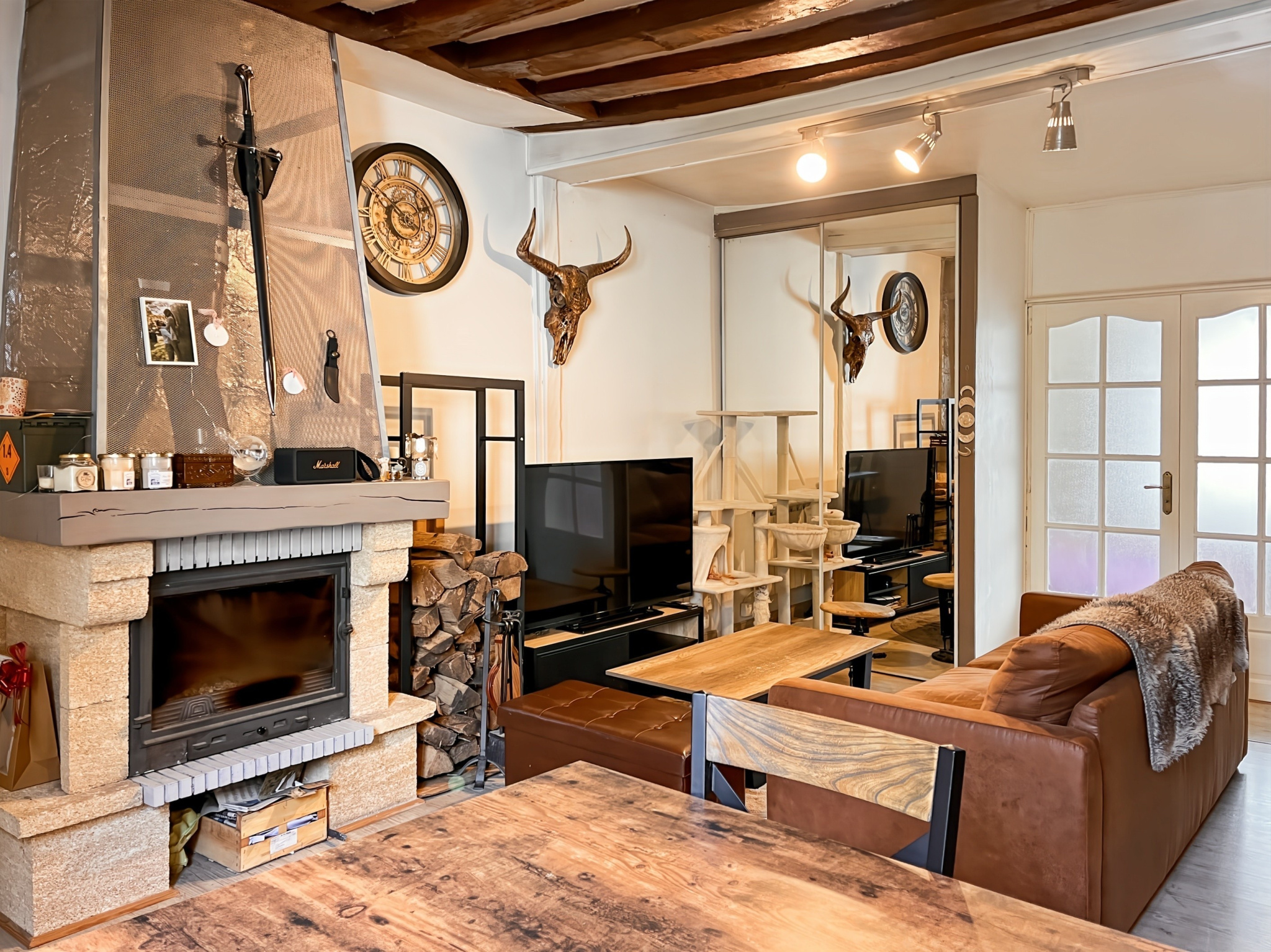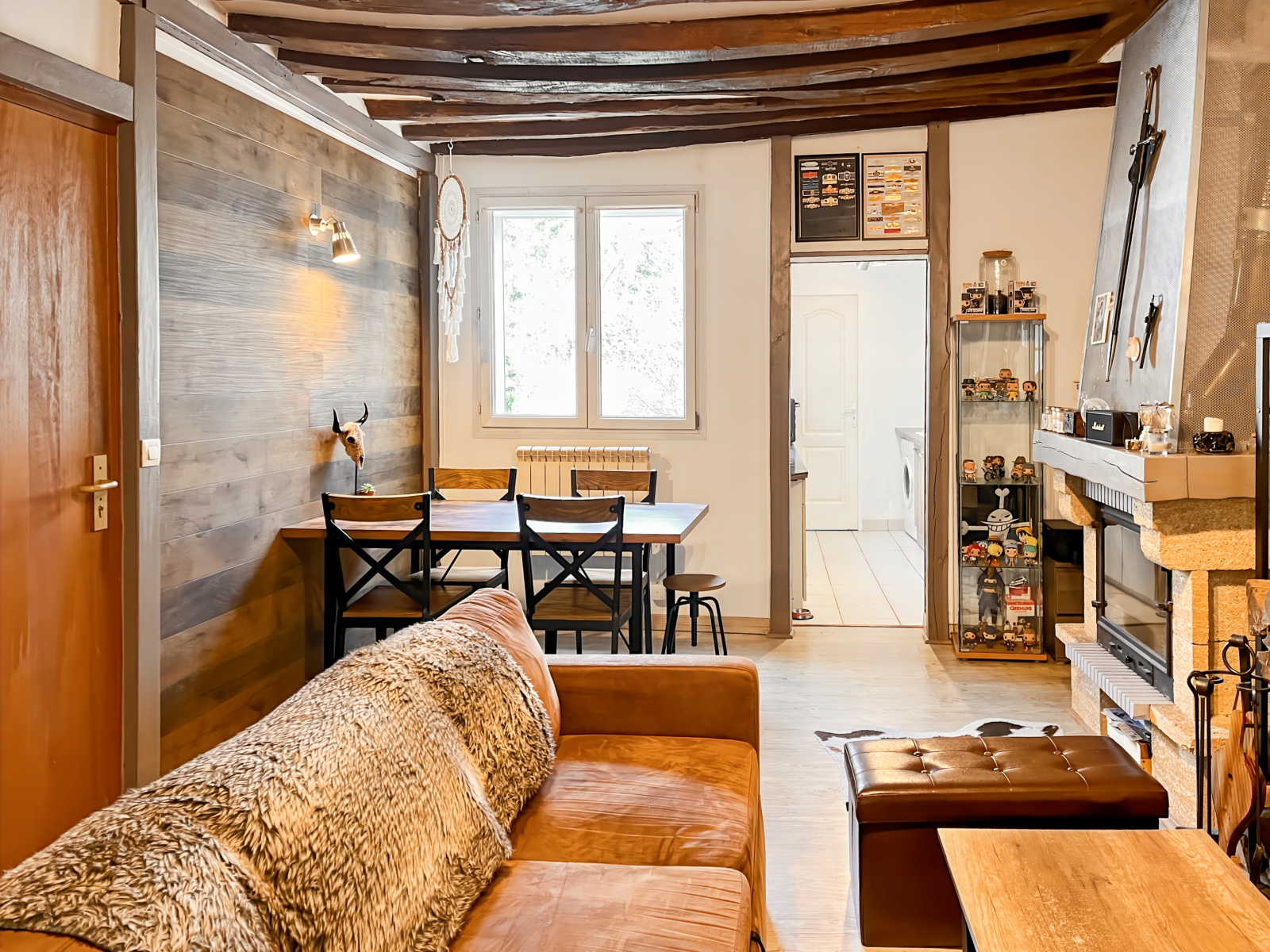 Il se compose d’un salon-séjour de 22 m² avec cheminée à insert, bénéficiant de trois grands placards aménagés, apportant un réel confort de rangement.
