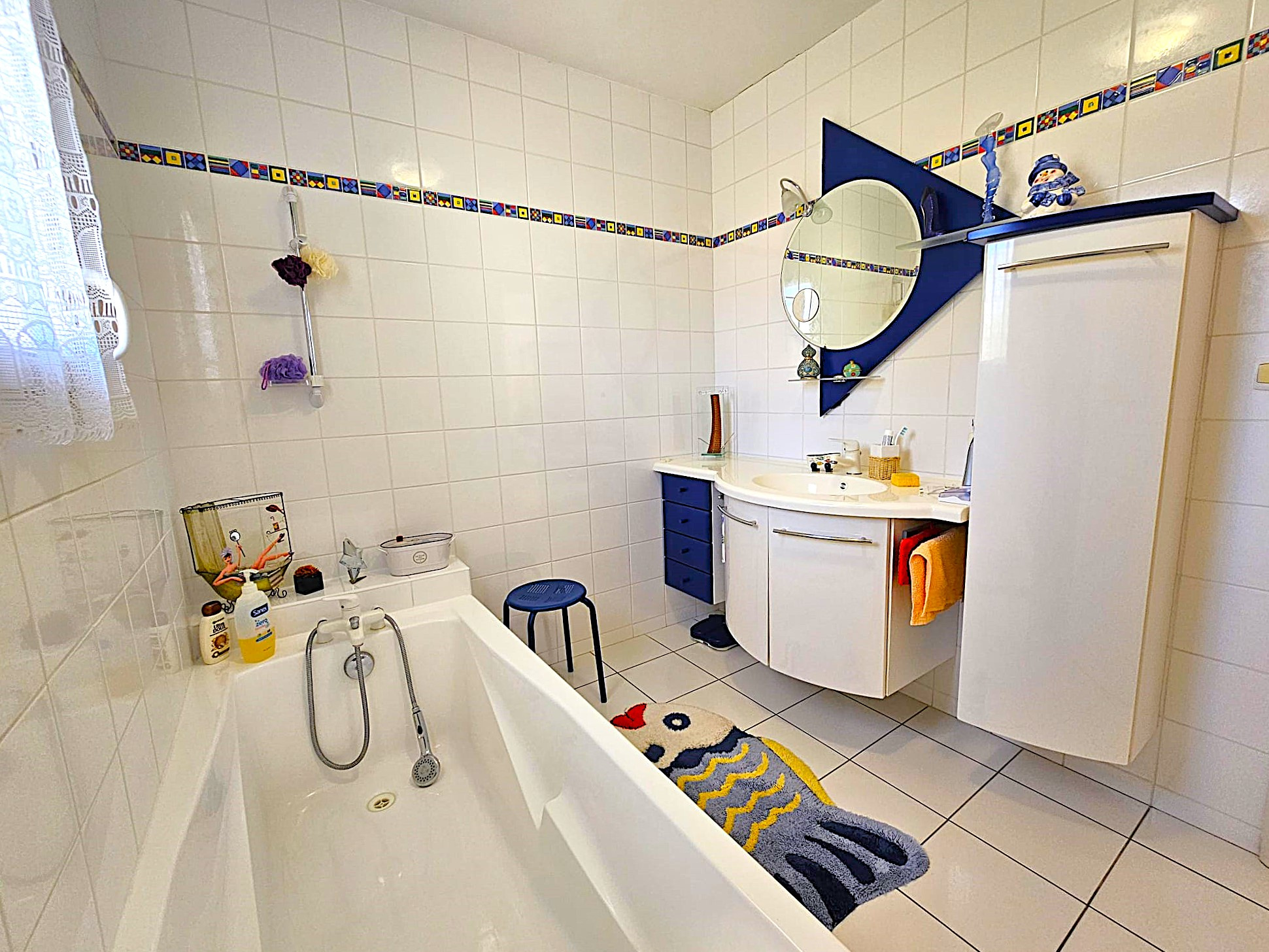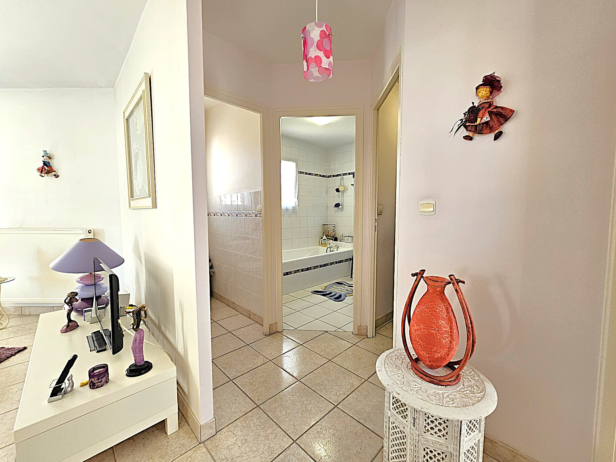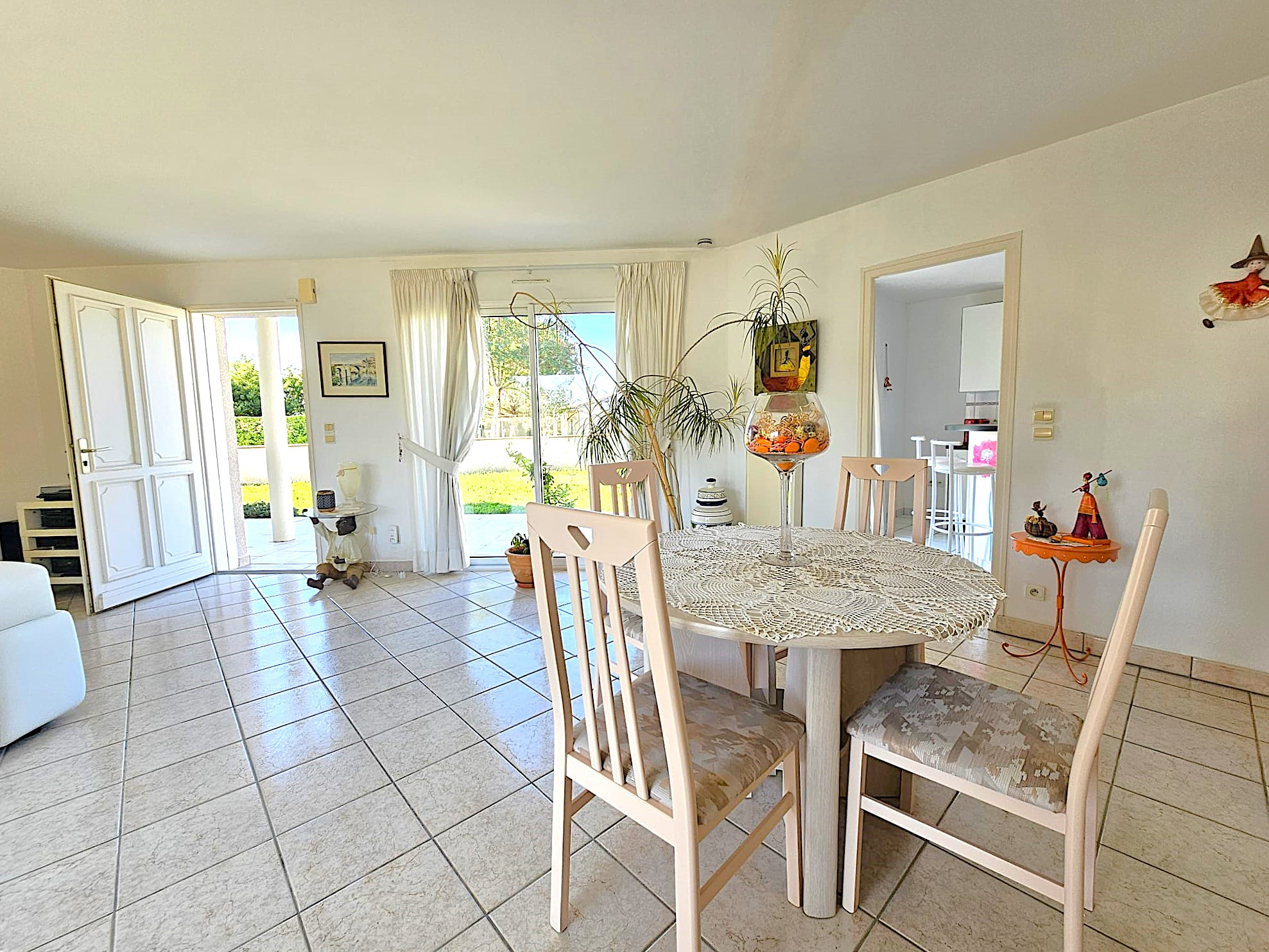 Il se compose d'une vaste pièce de vie ( 38 m²) généreusement éclairée par de larges baies vitrées ( Est et Ouest), d'une cuisine séparée, aménagée et équipée (avec son accès direct au garage) et d'une partie nuit composée de deux chambres, d'un dressing indépendant, d'une salle de bains et de WC séparés.