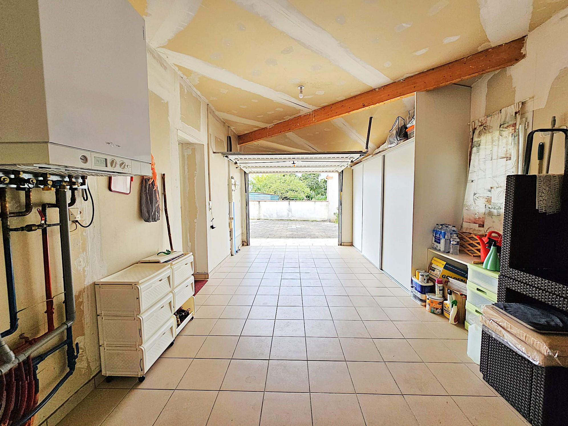 Le garage attenant et communiquant est carrelé et dispose d'un espace buanderie et chaufferie.