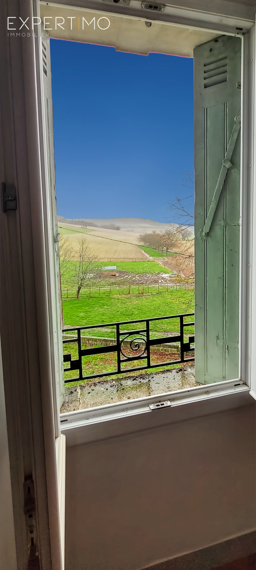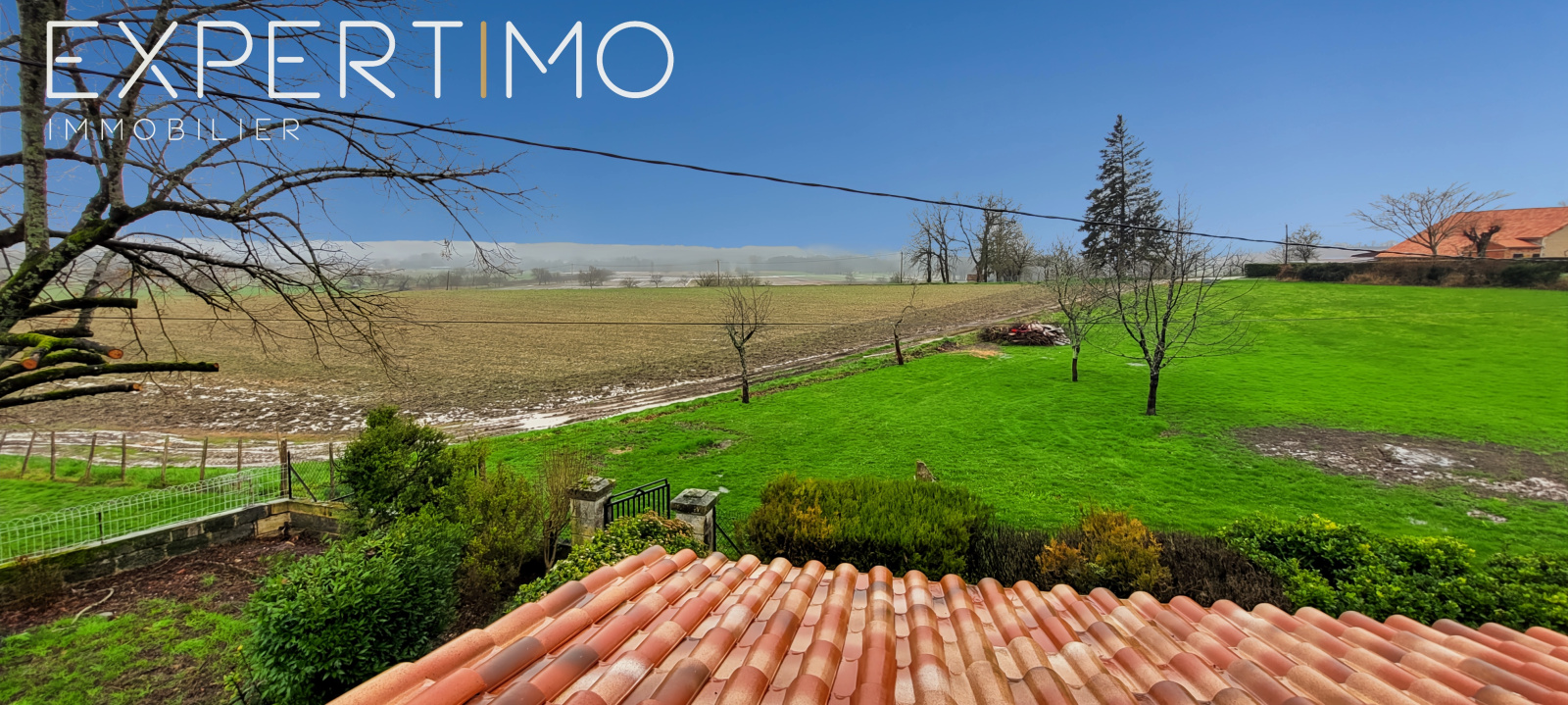 Terrain : Un parc plat et arboré de 5 000 m², offrant une vue dégagée sur la campagne environnante.