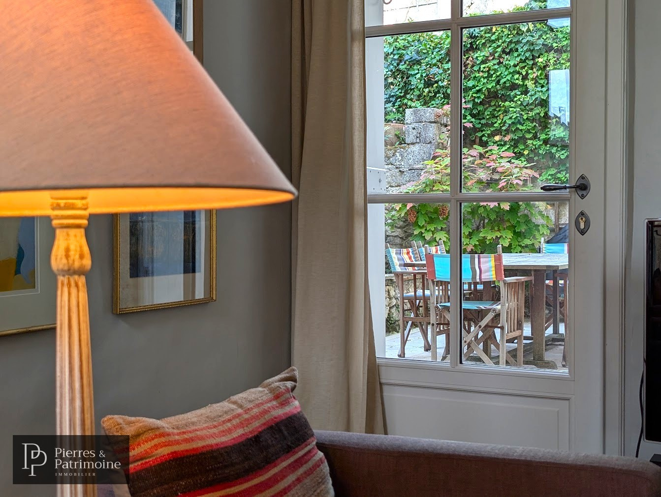 À l'extérieur, un jardin cosy, agrémenté de deux mares et d'une fontaine, ainsi qu'une cour de 100 m² et sa terrasse, offrent des espaces calmes et faciles à entretenir.