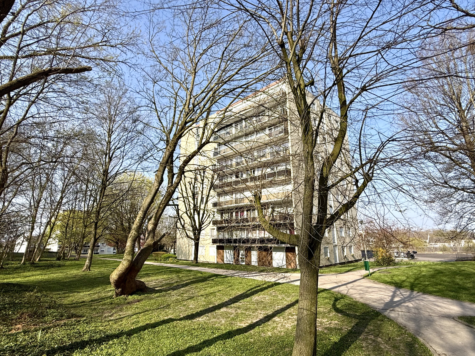 Commerces, écoles, tram T4 et espaces verts à proximité immédiate.