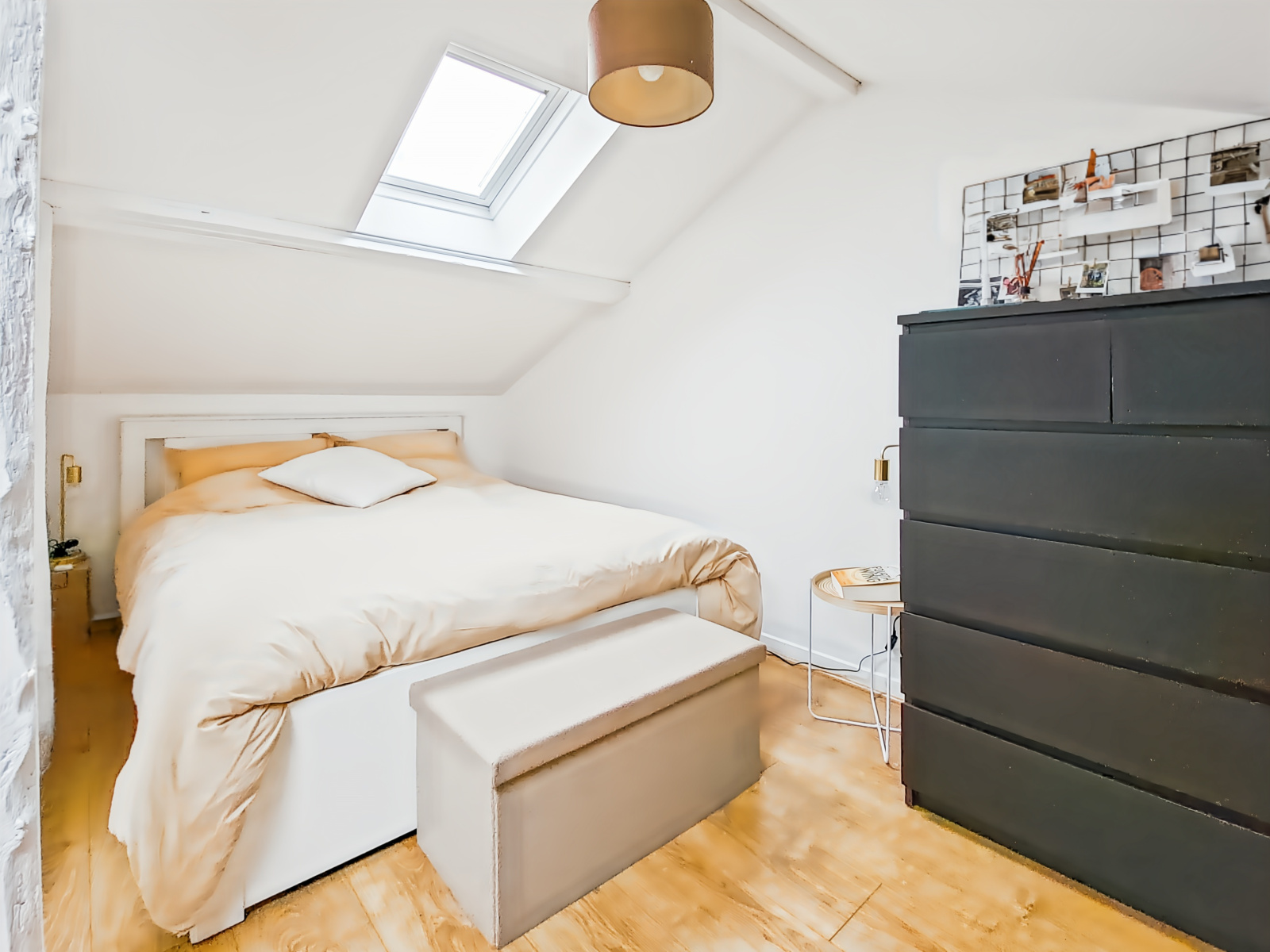 Il se compose au rdc : un espace de vie traversant et lumineux, ouvert sur un coin cuisine aménagé, le tout donnant sur une terrasse + jardin de 38 m2 exposés plein Sud. A l'étage : un palier avec un coin bureau ou autre, un espace nuit et son dressing, une salle de bain et un wc indépendant