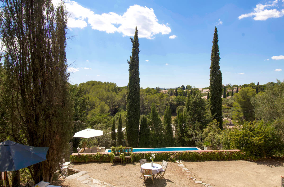 En entrant, vous êtes accueillis par des cyprès et des arbustes et plantes méditerranéens.