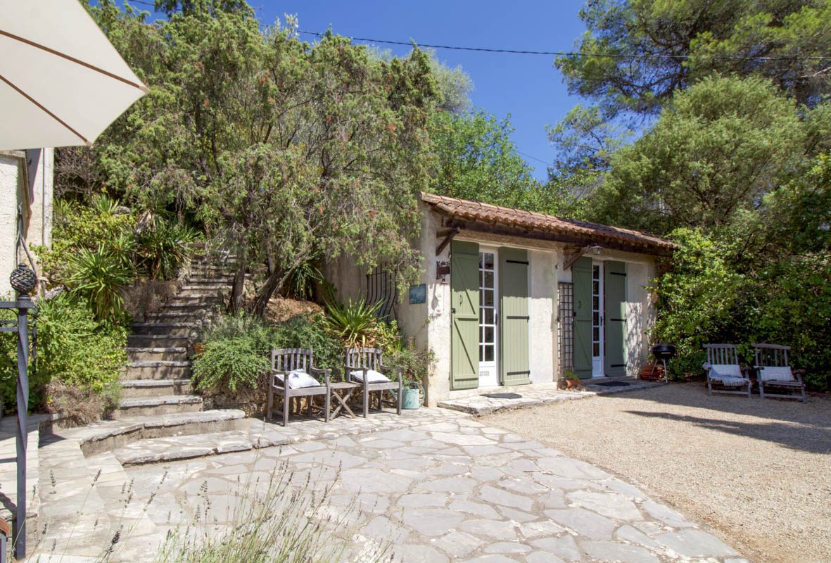 Sur le terrain on trouve de nombreuses terrasses et des petits coins de détente sur différents niveaux. Chacune sans vis à vis et toujours avec une belle vue. Bien que proche du centre ville, la propriété est entourée de verdure et de grands arbres. Vous pouvez faire de belles promenades dans les environs.