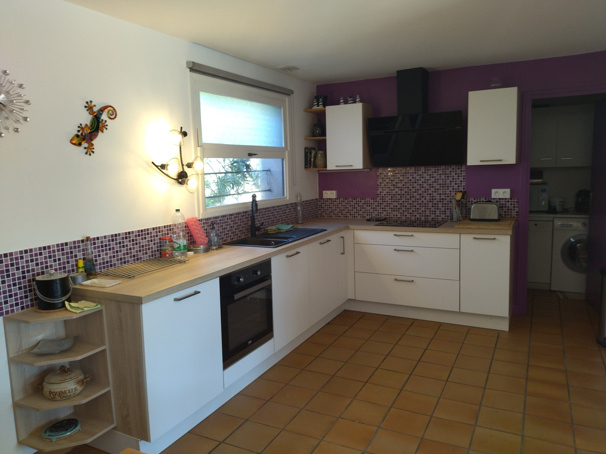 Entrée, séjour cheminée de 38m², cuisine ouverte aménagée équipée, bureau, 3 belles chambres, salle d'eaurécente, wc indépendant avec lave mains.
