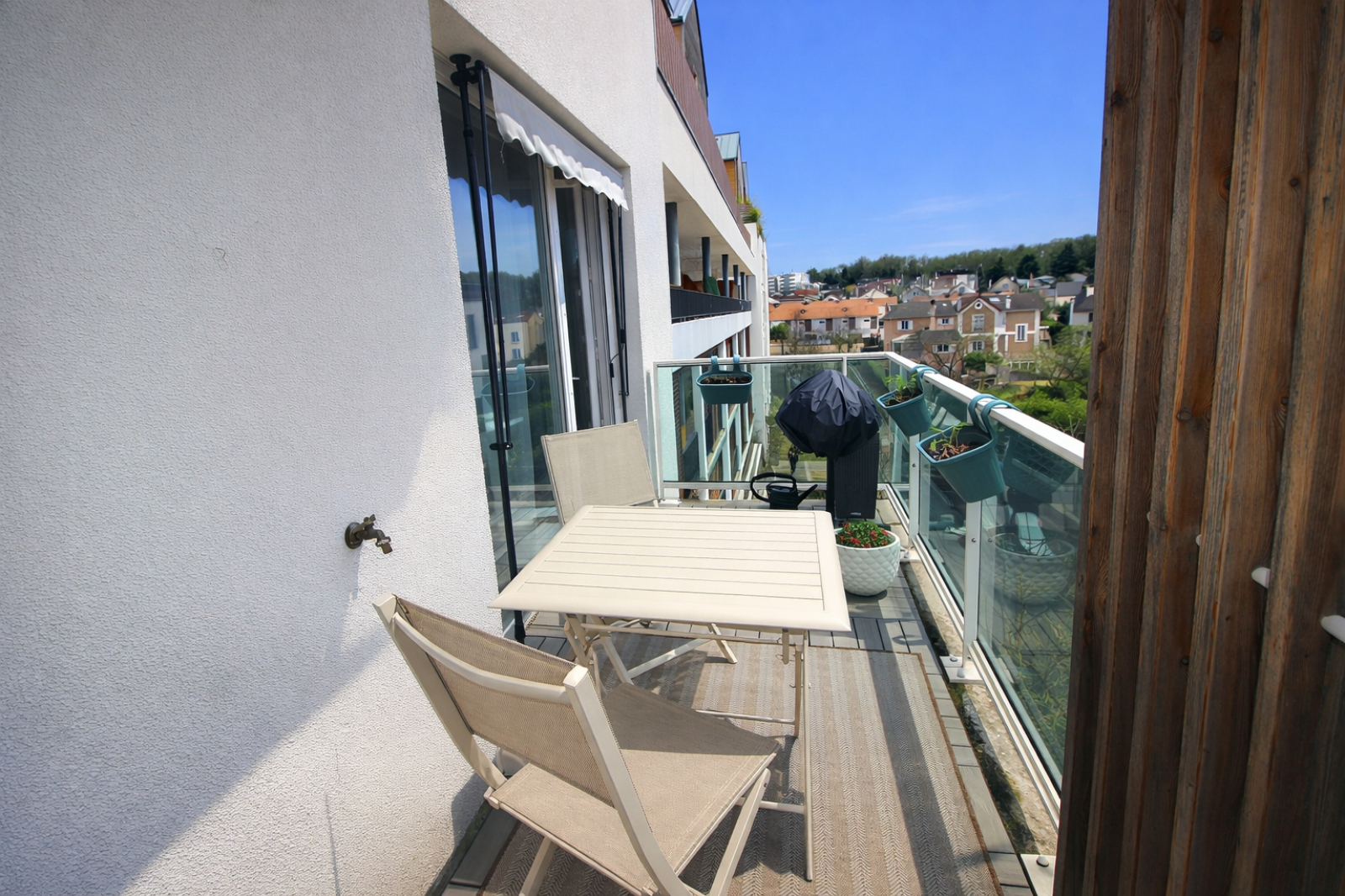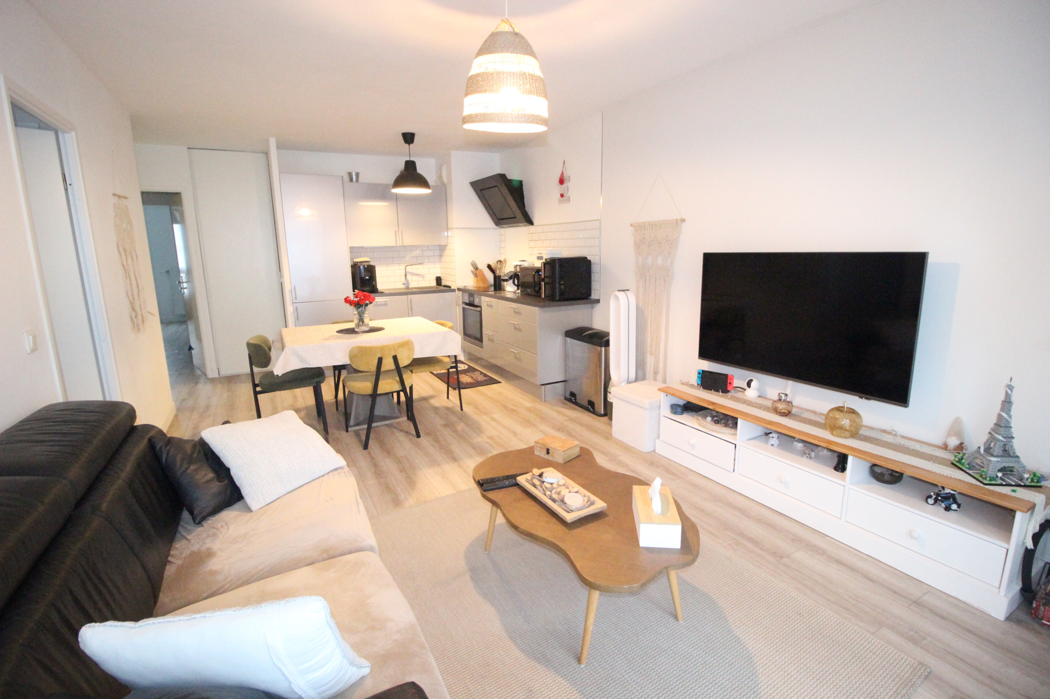 Dès l’entrée, vous découvrirez un séjour spacieux et convivial, baigné de lumière, avec une cuisine équipée parfaitement intégrée. L’ensemble s’ouvre sur un balcon, véritable prolongement de l’espace de vie, idéal pour profiter des beaux jours en toute sérénité.