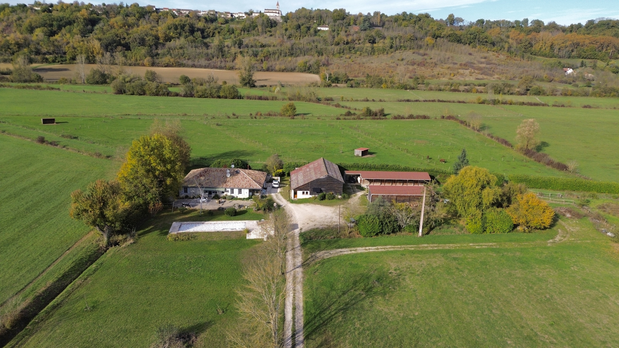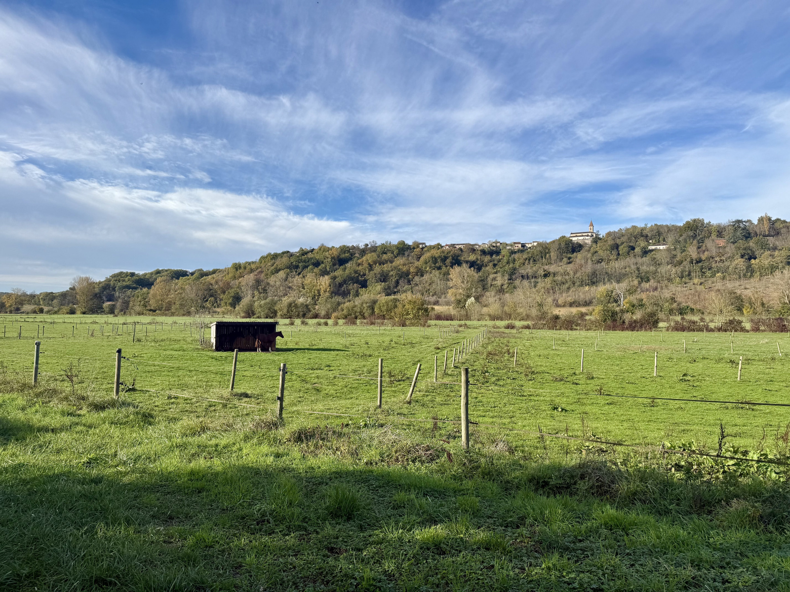 Cette propriété rare se situe dans une vallée tranquille près de Castelsagrat, entourée de vues à 360° et de 18 hectares de pâturages plats et verdoyants, divisés en paddocks clôturés avec ruban.