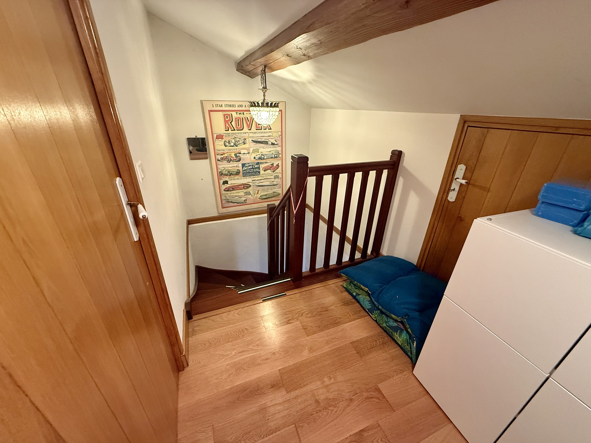 La maison de campagne, une grange magnifiquement rénovée, offre plus de 200 m² d’espace habitable, avec chauffage au sol sur la plupart du rez-de-chaussée. Il y a deux chambres au rez-de-chaussée et une grande troisième chambre dans les combles.