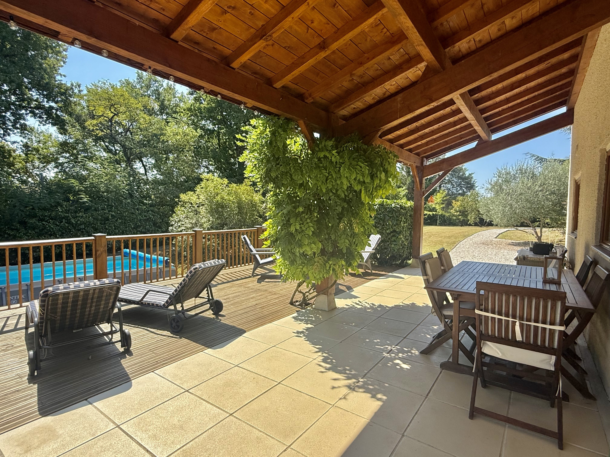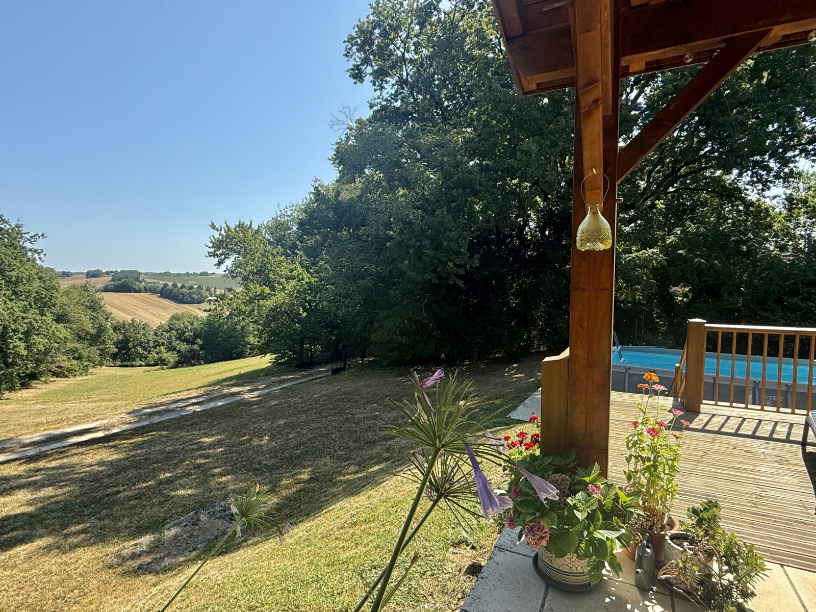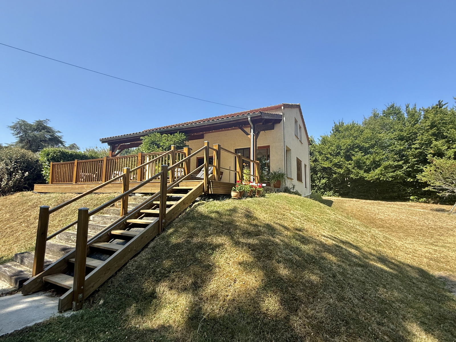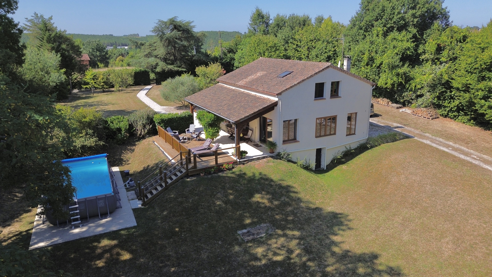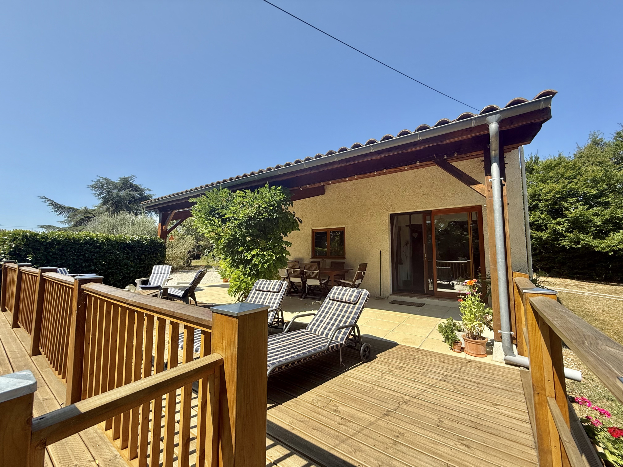 Nichée en hauteur et offrant une vue imprenable sur le jardin et la vallée, cette charmante maison de trois chambres allie tranquillité et commodité, à seulement quelques pas du village recherché de Castelsagrat, avec son café-restaurant, sa boulangerie, ses commerces et son école primaire. La propriété s’étend sur 1,9 hectare, bordée d’un côté par un bois et ombragée par un chêne majestueux, et a été soigneusement entretenue au fil des ans. À l’intérieur, de beaux volumes de vie et une terrasse couverte permettent de profiter d’une vue pittoresque sur le jardin et la piscine. En hiver, un insert dans le salon, équipé d’un bouilleur, assure à la fois le chauffage et l’eau chaude.