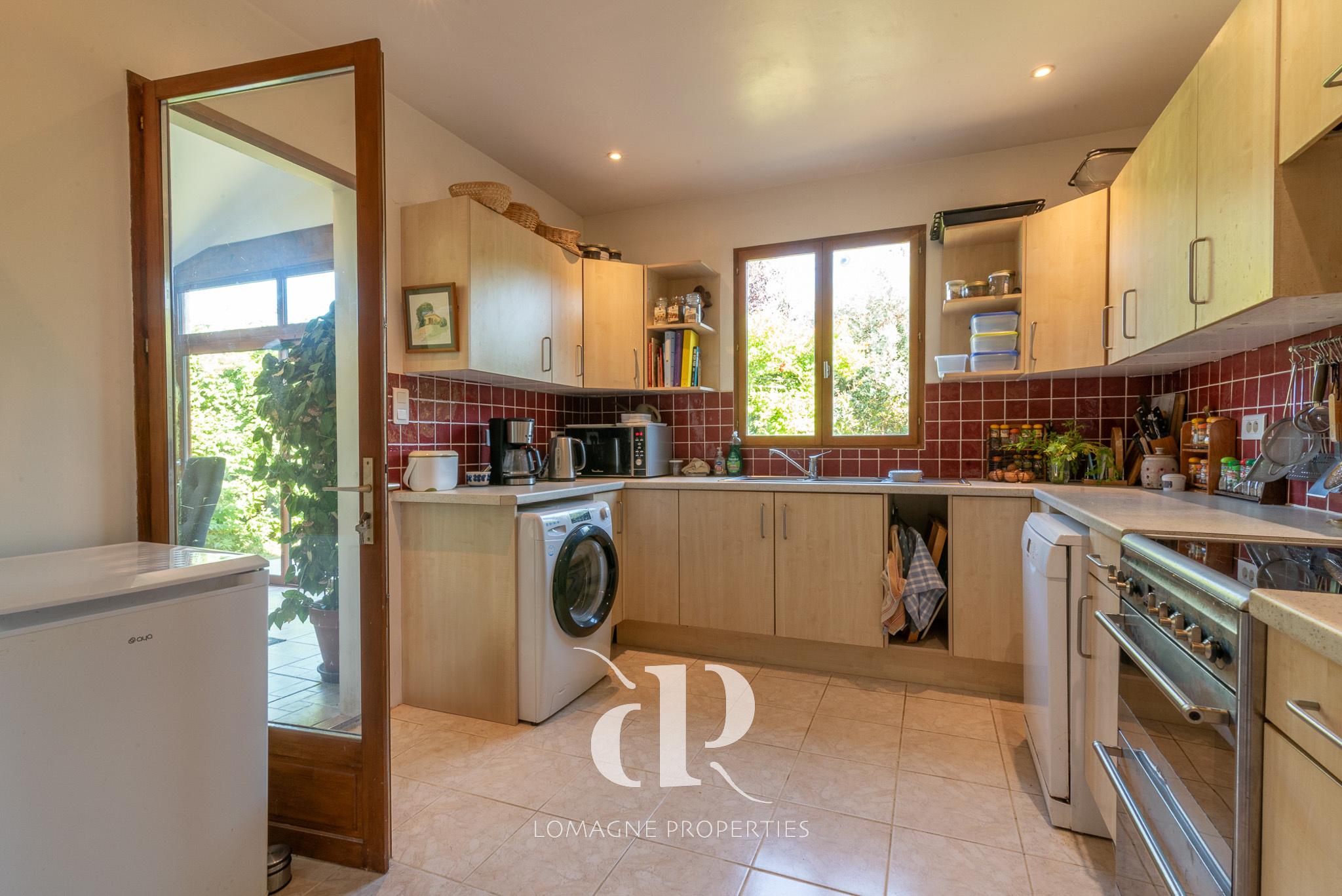 avec de grandes portes vitrées coulissantes donnant sur le jardin. Avec deux entrées, un garage et un cadre rural
