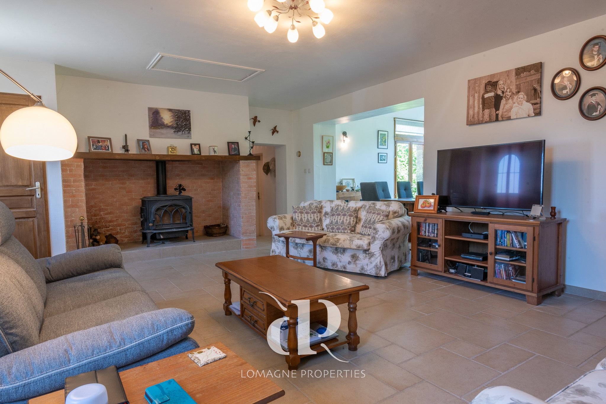 - Salon (33,1m2) - poêle à bois, sol carrelé ouvert sur,